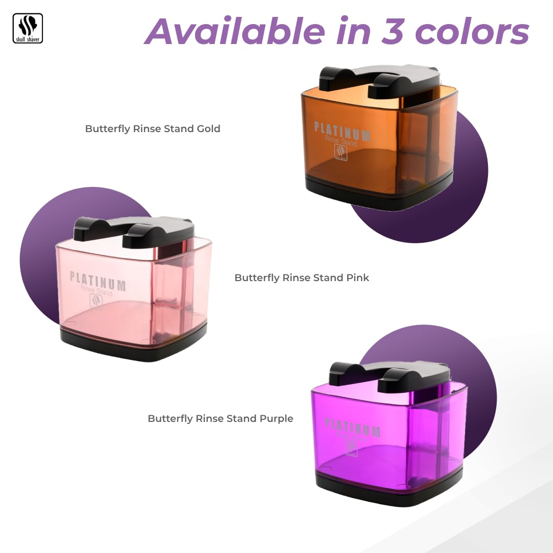 Platinum Rinse Standthis Shaving Stand Is Multiuse Shaving Stand & It Is Is Compatible With All Model Of Skull Shaver For Men And Women. Rinse Stand Developed Specifically For Skull Shaver Larger Capacity And Size Than Old Skull Shaver Rinse Stand. It Allows More Clean Water To Flow Through The Running Blades Doubles As A Storage And Display Stand For Your Pitbull Shaver Hang Your Shaver In Different Styles Compatible With All Skull Shaver And Butterfly Shaver Models. It Has A Tight Chrome Handle Also A Handy Rinsing Cup. This Will Help You To Keep Your Shaver Clean.