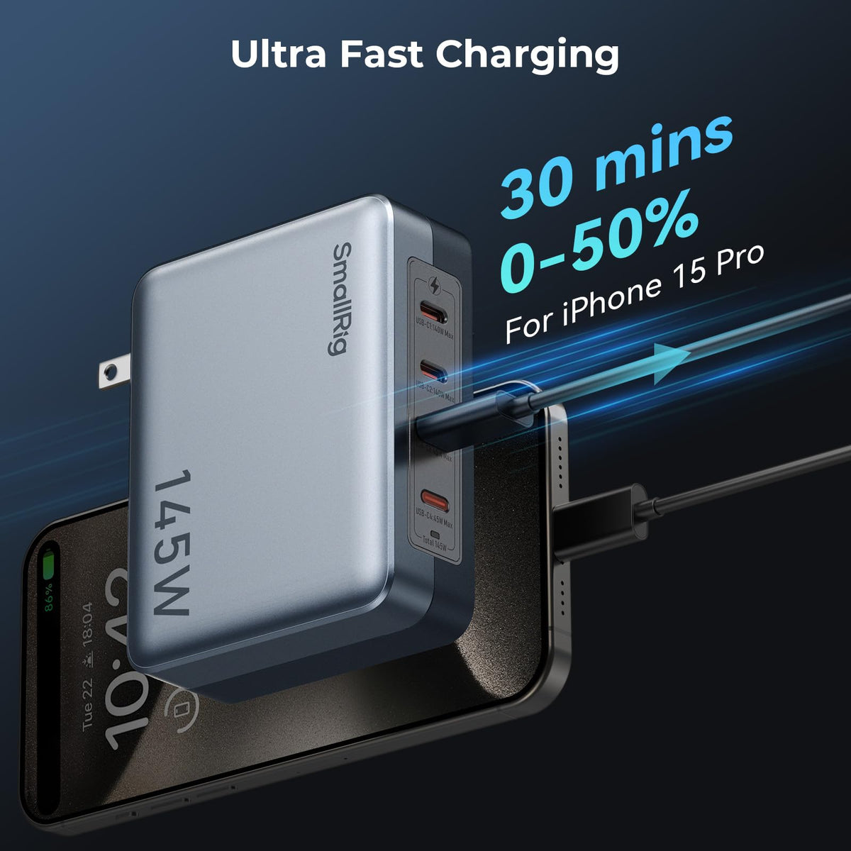 Smallrig 145W Usb-C Charger, 4-Port Pd3.1 Gan Fast Charger For Macbook Pro/Air Pps Wall Charger For Iphone 15, Galaxy S24/S23, P