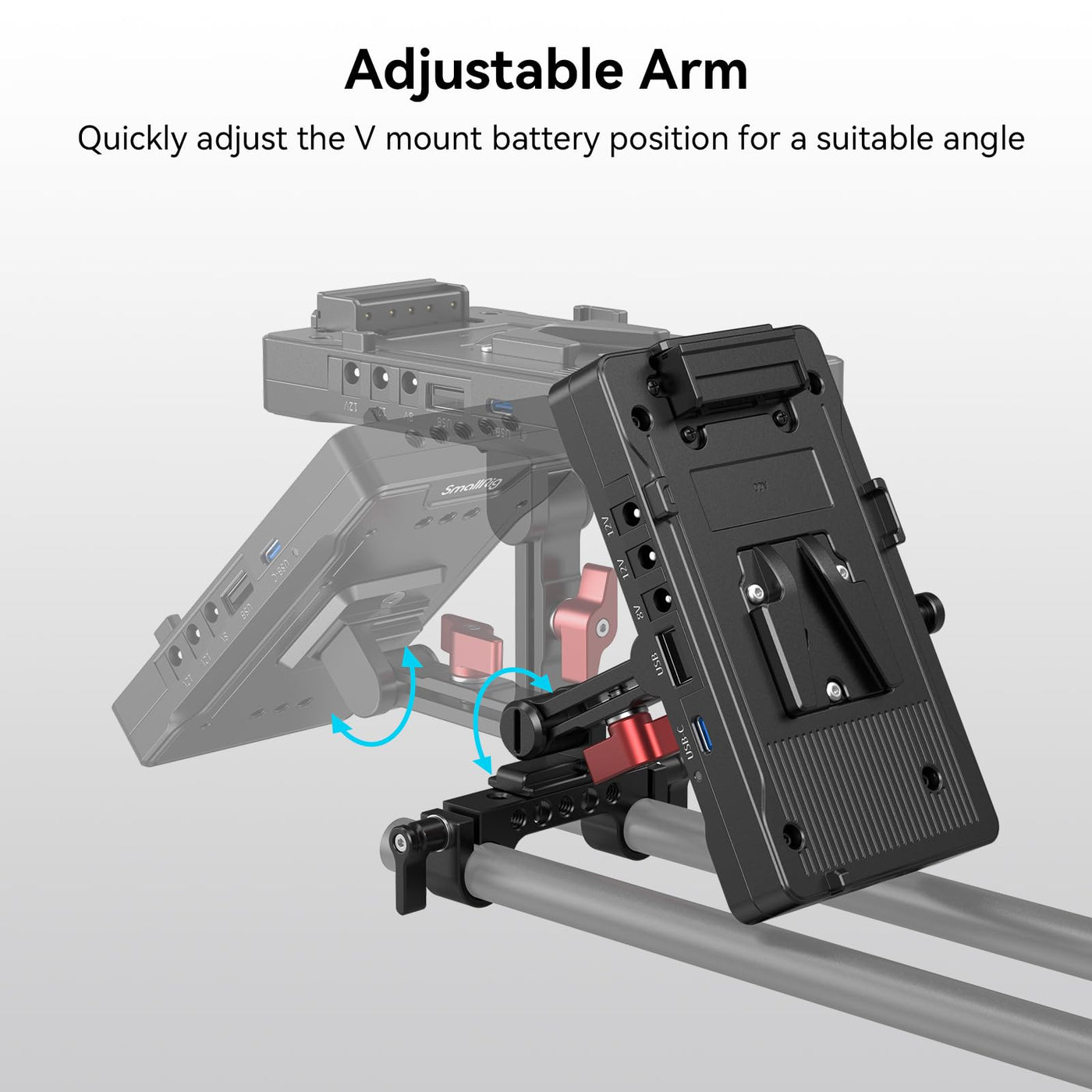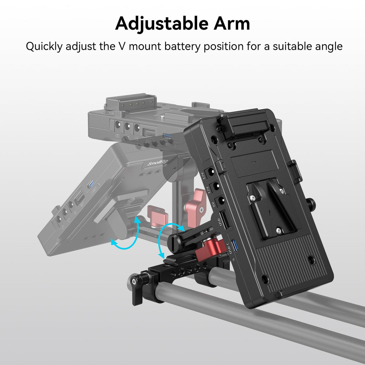 Universal Compatibility: Embrace Versatility With The Standard V-Mount, Ensuring Compatibility With A Broad Spectrum Of V-Mount Batteries Available In The Market. Fully Compatible With Smallrig V-Mount Battery: Vb50(Asin:B0Bqlv3W1F), Vb99(Asin:B0B6Z9K42P), Vb99 Pro(Asin:B0Clgqdfcg), Vb155(Asin:B0B6Zcnf1P). | Powerful Charging Hub: Experience High-Speed Charging With The Pd Protocol-Compatible Usb-C (65W Max.) And Qc Protocol-Compatible Usb-A (36W Max.) Ports. Additional D-Tap (14.8V X 1) And Dc (8V X 1 / 12V X 2) Power Ports Provide A Comprehensive Charging Solution For Various Devices. Clear Indication Of Working Status And Fast/Slow Charging Modes Through The Power And Charging/Discharging Indicator Lights. | Effortless Integration: Streamline Your Setup With Quick And Hassle-Free Mounting Onto Any 15Mm Lws Rod System, Enhancing The Efficiency Of Your Workflow. Six 1/4-20 Threaded Holes And Ten M4 Threaded Holes On The Back, Five 1/4-20 Threaded Holes On The Top And Bottom, Which Support Dual Rod Clamp And Many Other Accessories. | Adaptable Battery Positioning: Thanks To Its Adjustable Arm, You Can Quickly Adjust The Position Of The V-Mounted Battery To Suit Your Shooting Needs For Optimal Balance And Flexibility. | Intelligent Controls And Robust Build: Take Command With The User-Friendly Power On/Off Button, Simultaneously Controlling Multiple Ports For Seamless Operation. The Aluminum Alloy Plate Not Only Exudes Durability But Also Boasts Excellent Heat Dissipation, Ensuring Sustained High Performance Even In Demanding Shooting Conditions.