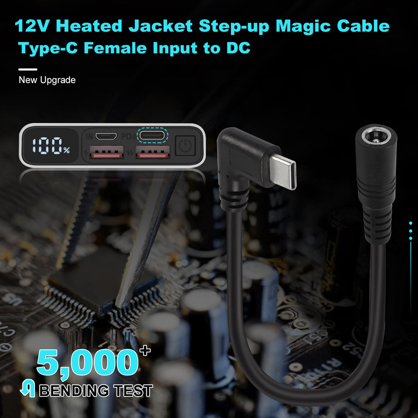 Benifts Of This Heated Jacket Step-Up Magic Adapter Cable? 1, Save Money And Don'T Need Buy Extra Heated Jacket Backup Battery And Your Can Use Your Own Own Qc 3.0 Power Bank Or Pd Function Power Bank. 2, This Cable Can Make Your Heated Jacket Battery Slimmer,Flatter - Don'T Have To Put Up With The Heated Jacket Original Battery Jabbing Into Your Back When Sitting In A Chair Or Truck Seat Any More! Parameters: Iput Voltage 5V And Step-Up Output:12V Max Working Current: 12V 2A Lines Size: 2*20Awg Cable Length: 20Cm / 98Inches Color: Black Features: Not Fit Bosch Kobalt Smarkey Heat Jacket! Jacket Cannot Working If Usb Outlet