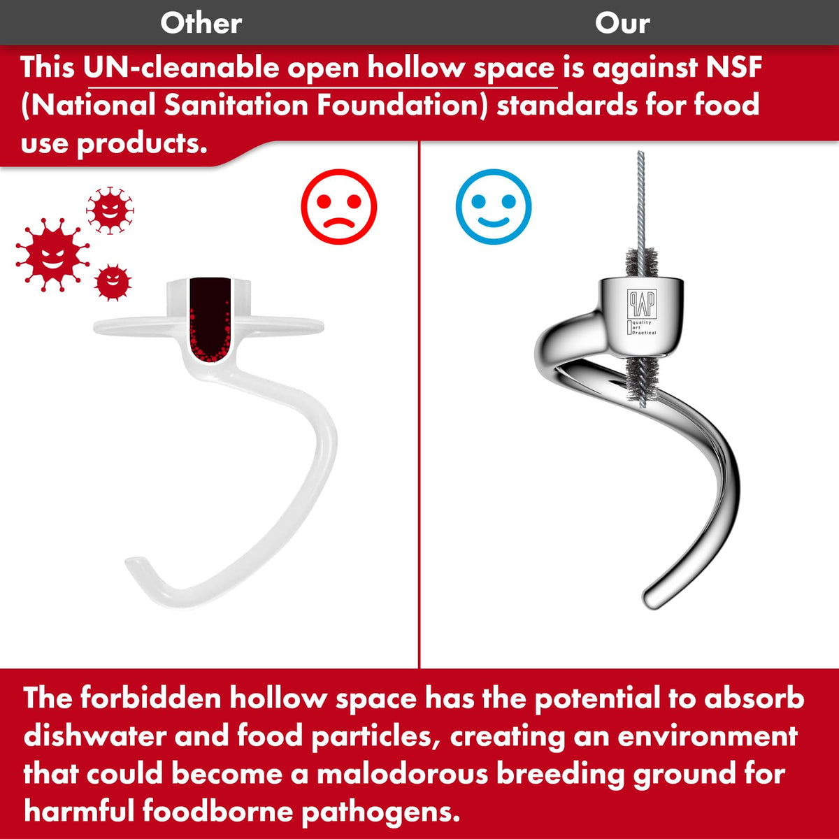 Q: Is this dough hook dishwasher safe?A: Yes, the stainless steel dough hook is dishwasher safe, making it easy to clean. It can also be washed by hand without any hassle.