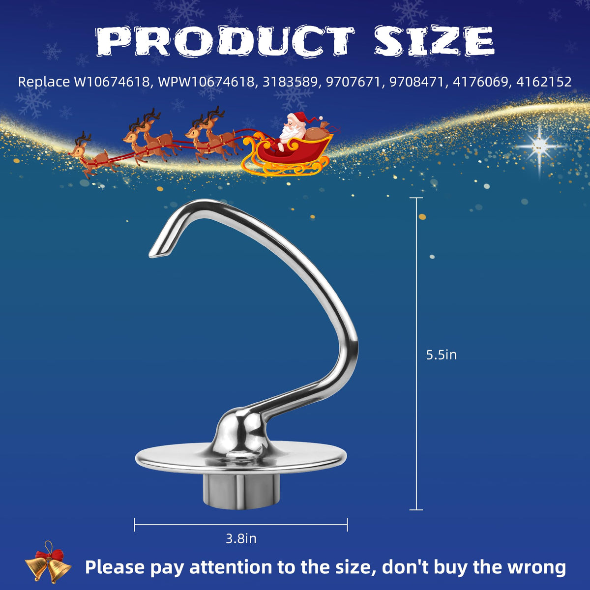 Compatibility--Mixer Dough Hook Replace W10674618, Wpw10674618, 3183589, 9707671, 9708471, 4176069, 4162152.Fit Models:3K45, 4K45, 4Ksm150, 4Ksm90, 5K45, 5Ksm150, 5Ksm156, 7K45, 8Ksm90, 9Ksm150, Bea30, K45, Ka15, Kdm90, Ksm100, Ksm103, Ksm111, Ksm120, Ksm150, Ksm151, Ksm155, Ksm158, Ksm160, Ksm45, Ksm75, Ksm90, Ksm95 Etc Please Notes--If The Attachment Hits The Bottom Or Sides Of The Bowl, It May Cause The Attachment To Warp Or Enamel To Chip Off. If, After Installation, The Attachments Are Touching The Bottom Of The Bowl Or Are Too Far Away You Can Adjust The Clearance On Your Mixer.Important Reminders:Unplug! Turn Off All The Power Before Repair For The Safety And Wear Gloves To Protect Oneself