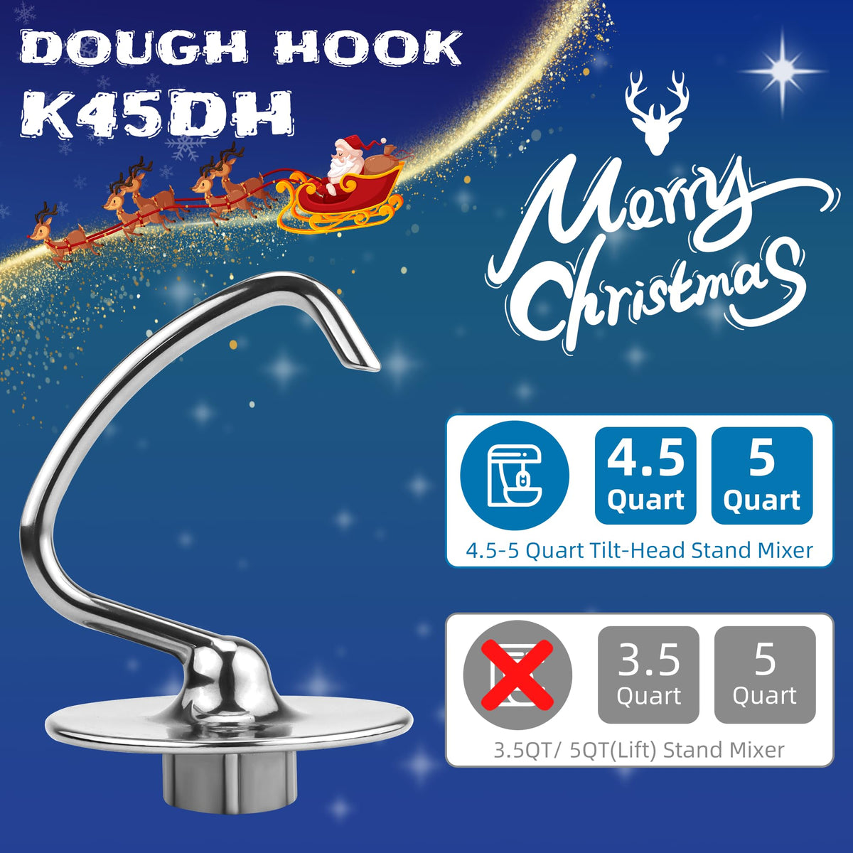 Stainless Steel Dough Hook For 4.5/5.0 Qt Kitchen Mixer Attachment K45Dh Dough Hook Replacement For K45 K45Ss Ksm90 Ksm150 Mixer