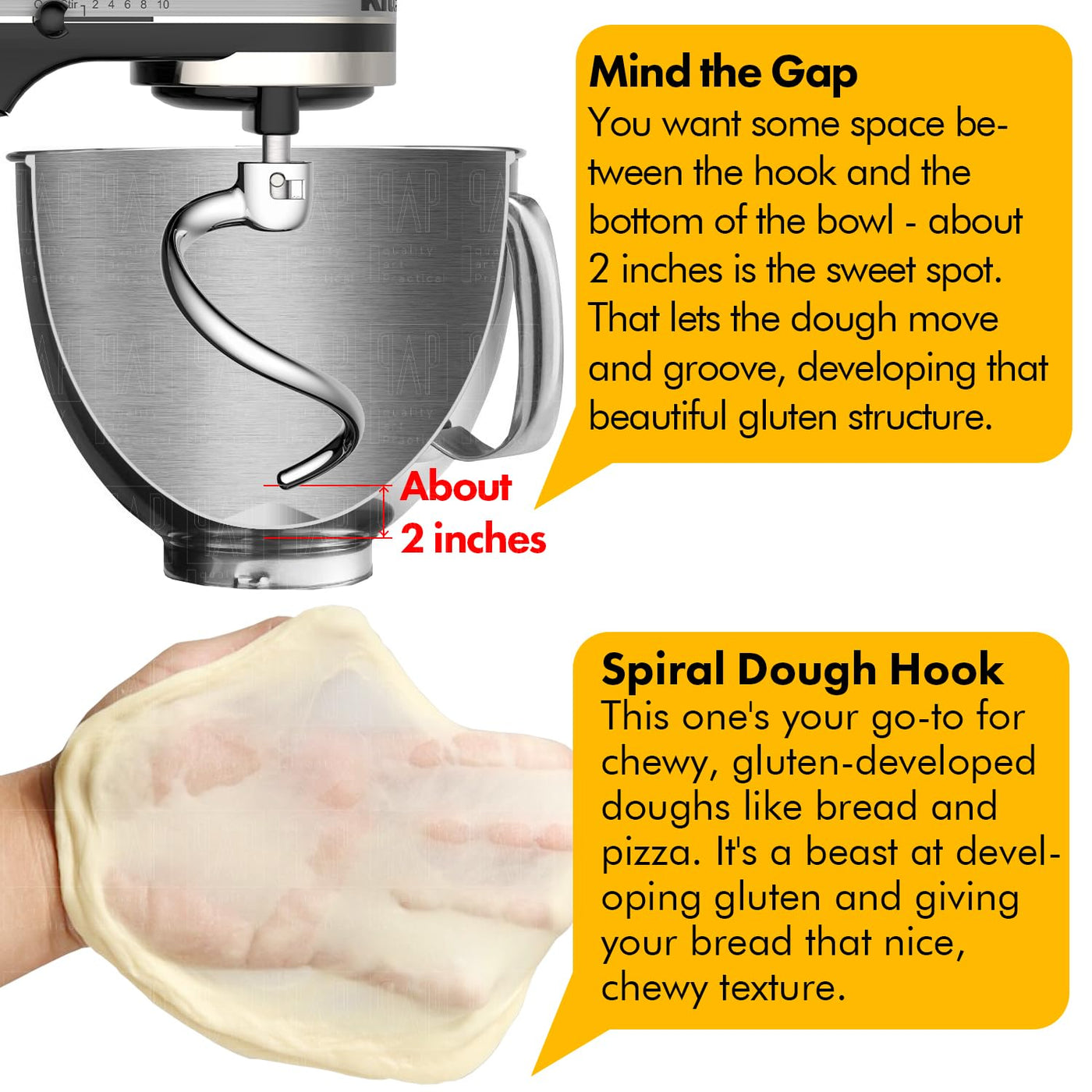 Stainless Steel Spiral Dough Hook,Accessories And Attachments For Kitchenaid Mixers, Fit 5 Qt Bowl Lift Mixing Bowl