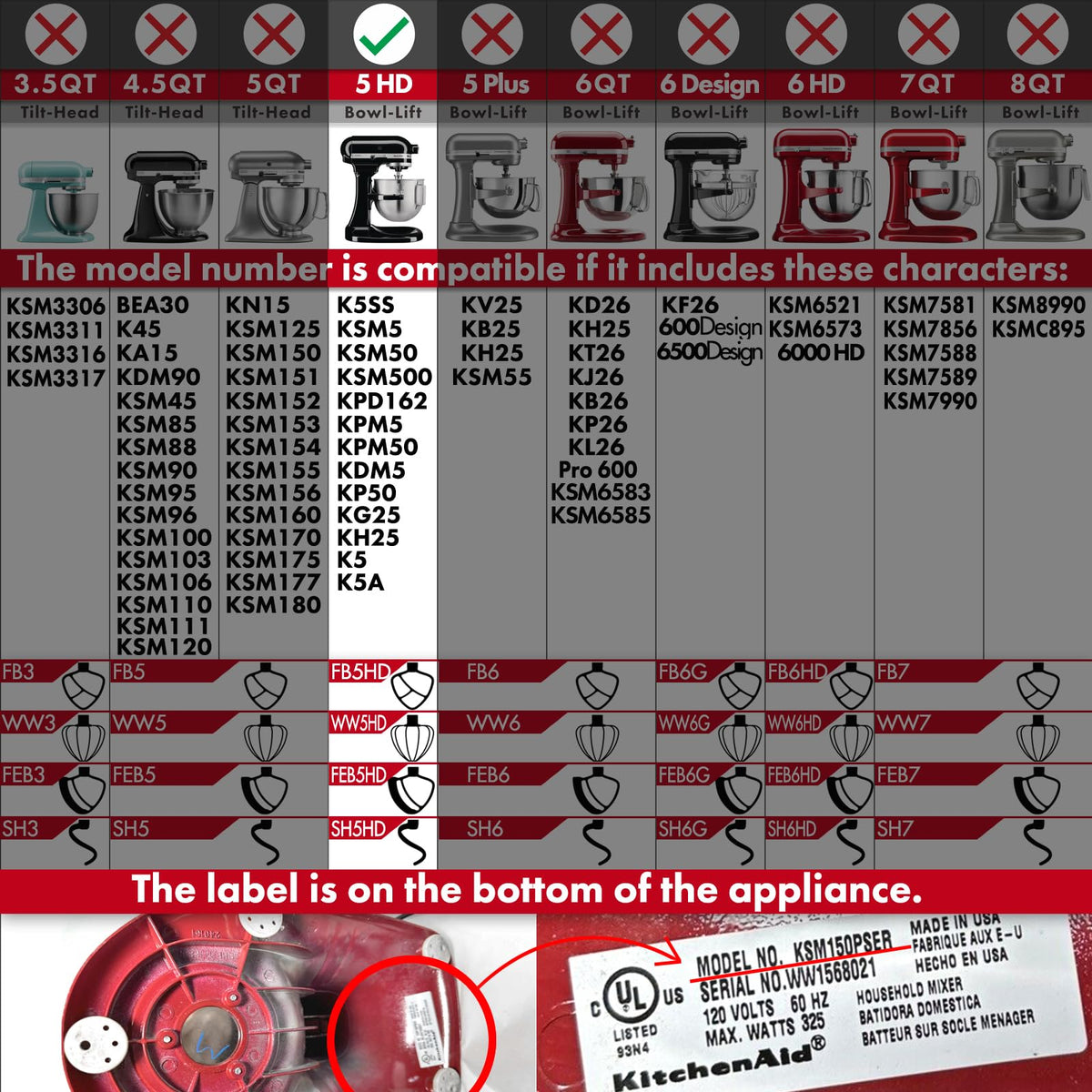 Q: Is this dough hook compatible with all KitchenAid stand mixers?A: This durable spiral dough hook is specifically designed for KitchenAid 5qt Bowl-Lift Mixers, including models from the Heavy Duty Series, Professional HD Series, Pro 450 Series, and Pro 500 Series. For a complete list of compatible models, please refer to the product description.