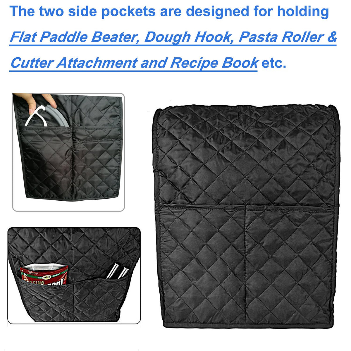Q: Does the cover have any additional storage features?A: Yes, the Stand Mixer Dust-proof Cover includes two side pockets designed for convenient storage of small attachments like flat paddle beaters, dough hooks, and recipe books, helping keep your kitchen organized.