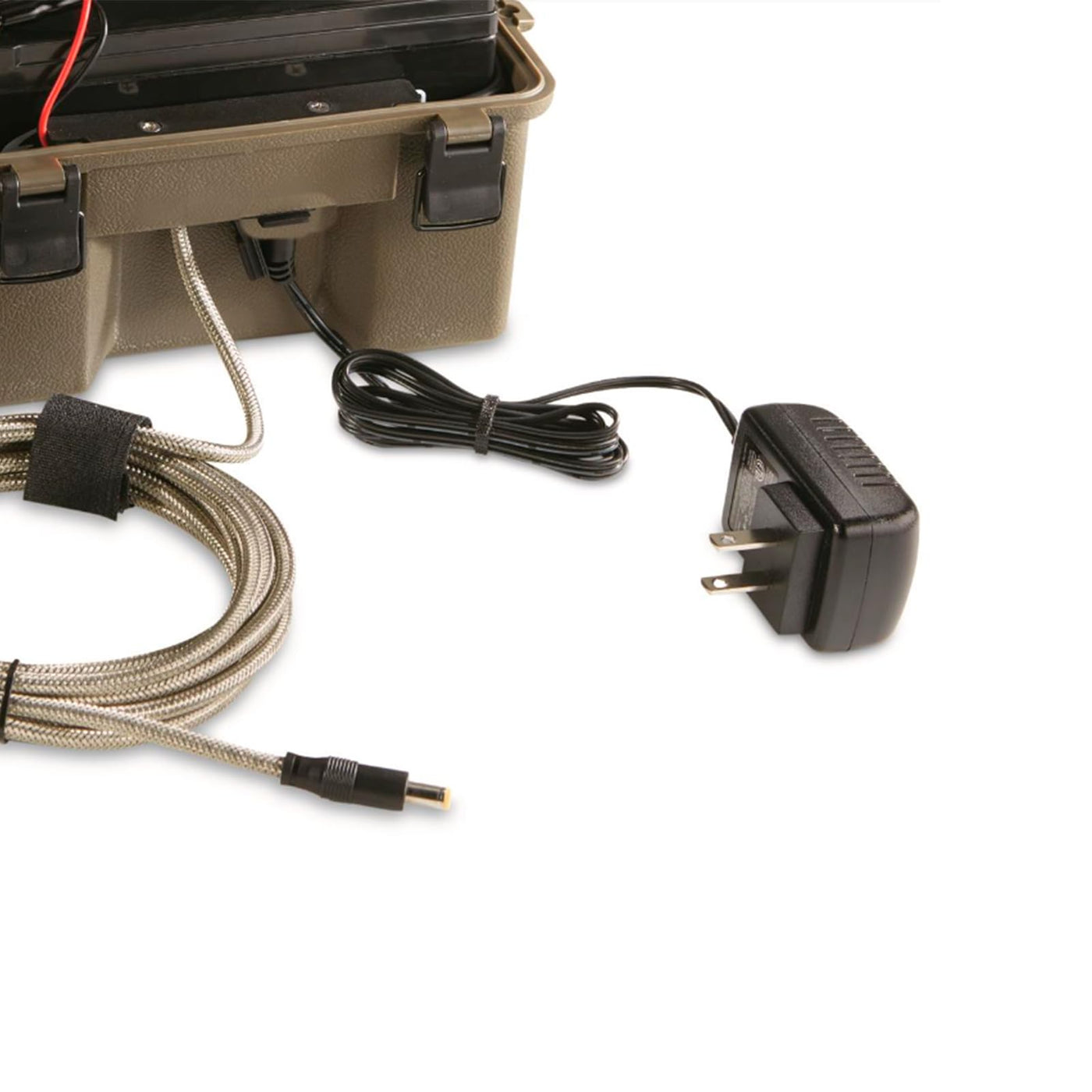 Stealth Cam 12V Battery Box Kit For Hunting Trail Camerassay Goodbye To Dead Batteries With This Robust Battery Pack Built To Withstand The Toughest Conditions. Tailored For Trail Cameras With An External Power Jack, This Sealed Lead Acid Battery Kit Ensures Compatibility & Prolonged Battery Life, Eliminating Concerns About Camera Downtime So You Can Capture Every Crucial Moment.This Kit Contains A Weatherproof Box, Ac Charger, Hanging Strap, And A 10Ft Stainless Steel Mesh-Covered Cable. Whether You'Re Dealing With Extreme Weather Conditions Or Simply Seeking Top Performance, This Trail Camera Battery Box Is Your Reliable Companion.The Waterproof Box Guarantees Your Batteries Remain Dry And Ready For Action, Delivering Watertight Protection In All Weather Conditions. With An Included Charging Cable For Added Flexibility, Powering Up Your Hunting Trail Camera Is A Breeze. Its Robust Construction Ensures Resilience, Making It The Preferred Choice For Outdoor Enthusiasts Seeking Optimal Performance From Their Trail Cameras.Elevate Your Hunting & Scouting Game With The Stealth Cam 12V Battery Box Kit, Your Go-To Solution For Prolonged & Uninterrupted Area Surveillance In Extreme Conditions. Capture Every Moment, Regardless Of The Weather.