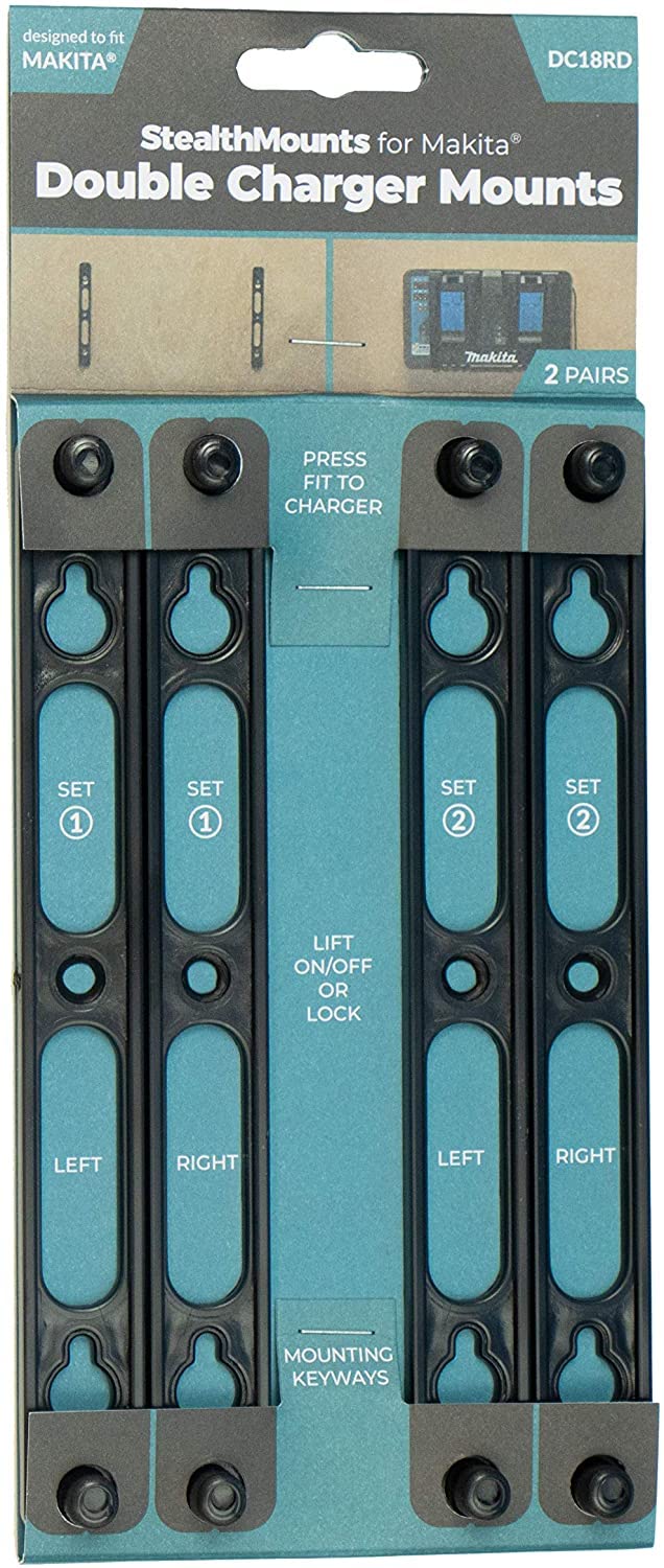 Q: What is included in the pack of StealthMounts Charger Mounts?A: The product comes in a pack of 2 charger mounts, allowing users to securely mount two Makita chargers to the wall, providing convenient access while keeping your workspace organized.