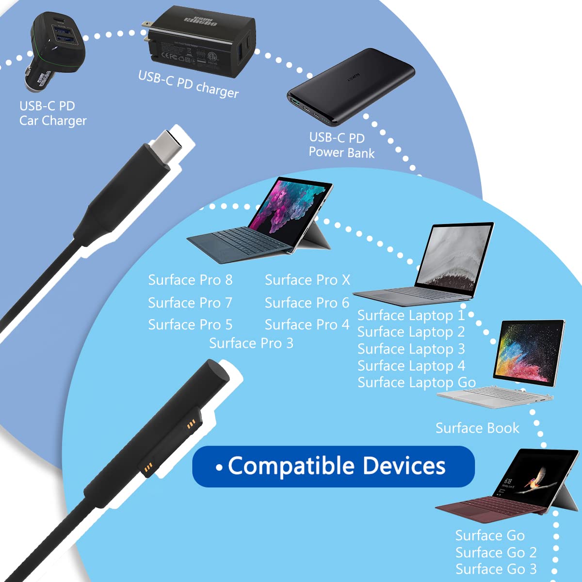 Ksw Kingdo Usb C Surface Car Charger With Surface Connect To Usb C Charging Cable