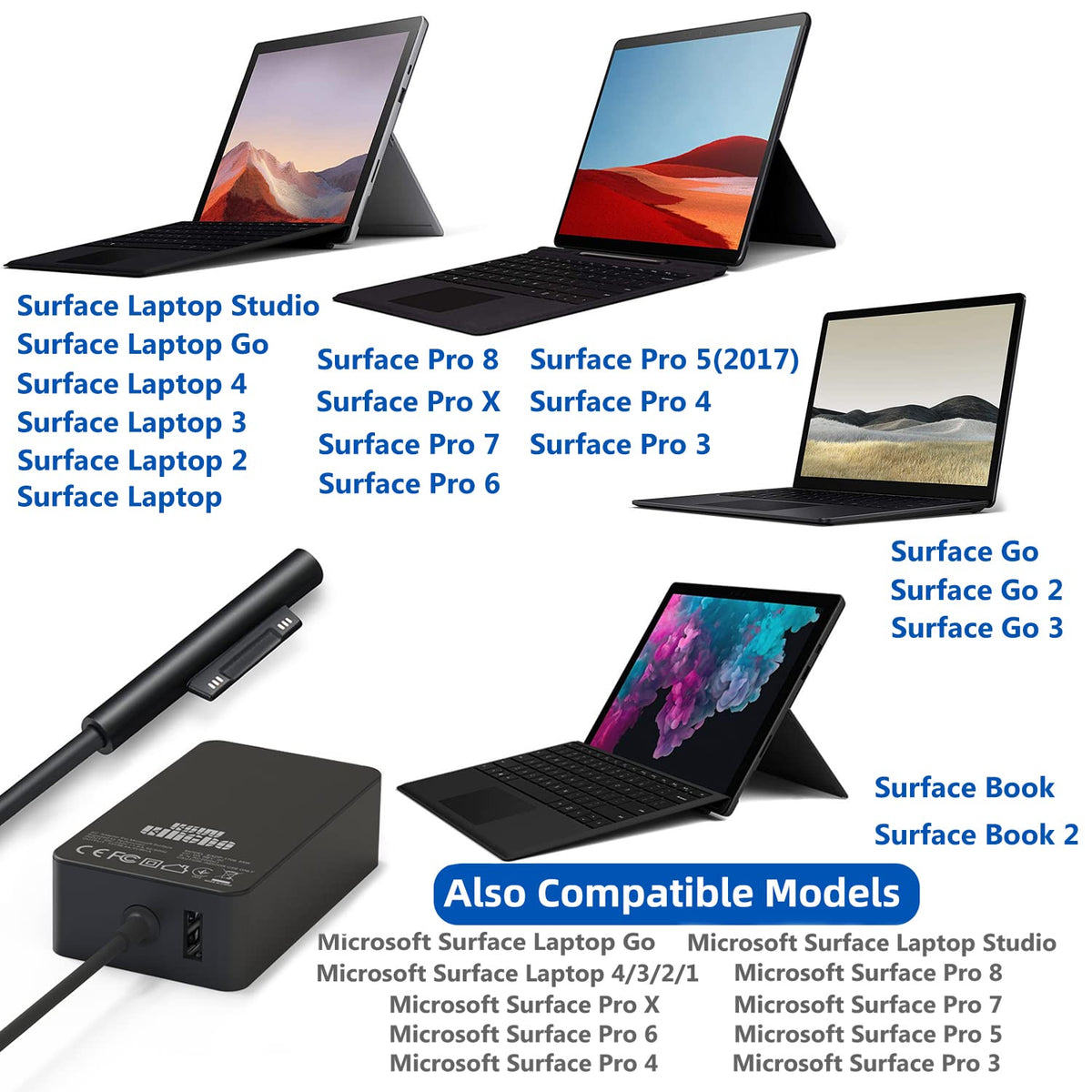 Surface Pro Surface Laptop Charger,65W Power Supply Adapter[Updated] For Microsoft Surface Pro 9/8/X/7+/7/6/5/4/3,Surface Laptop 5/Studio/4/3/2/1,Surface Book,Surface Go 3/2/1.Support 44W,36W,Led,Case