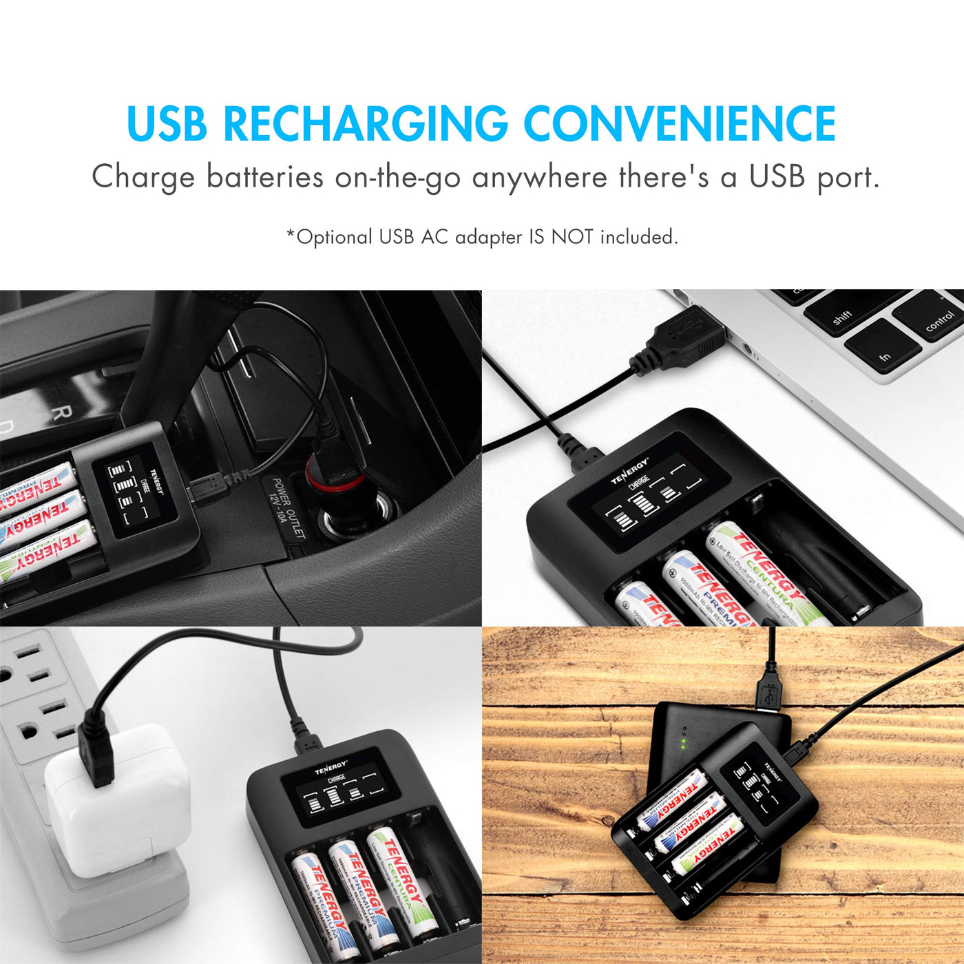 Tenergy Tn474U 4 Bay Nimh/Nicd Battery Charger With Lcd Display And Usb Input, Portable Charger For Aa/Aaa Nimh And Nicd Batteri