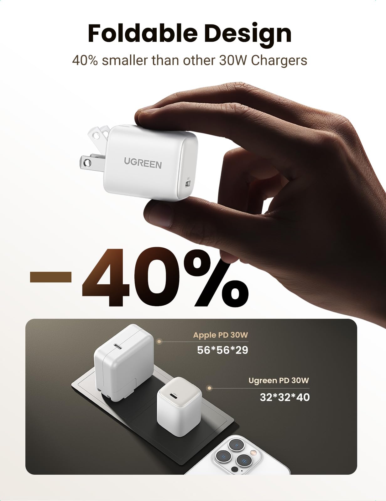 Ugreen 30W Usb C Charger, Nexode Foldable Gan Pps Compact Fast Wall Charger Block, Usb-C Power Adapter For Iphone 15 Pro Max/14/