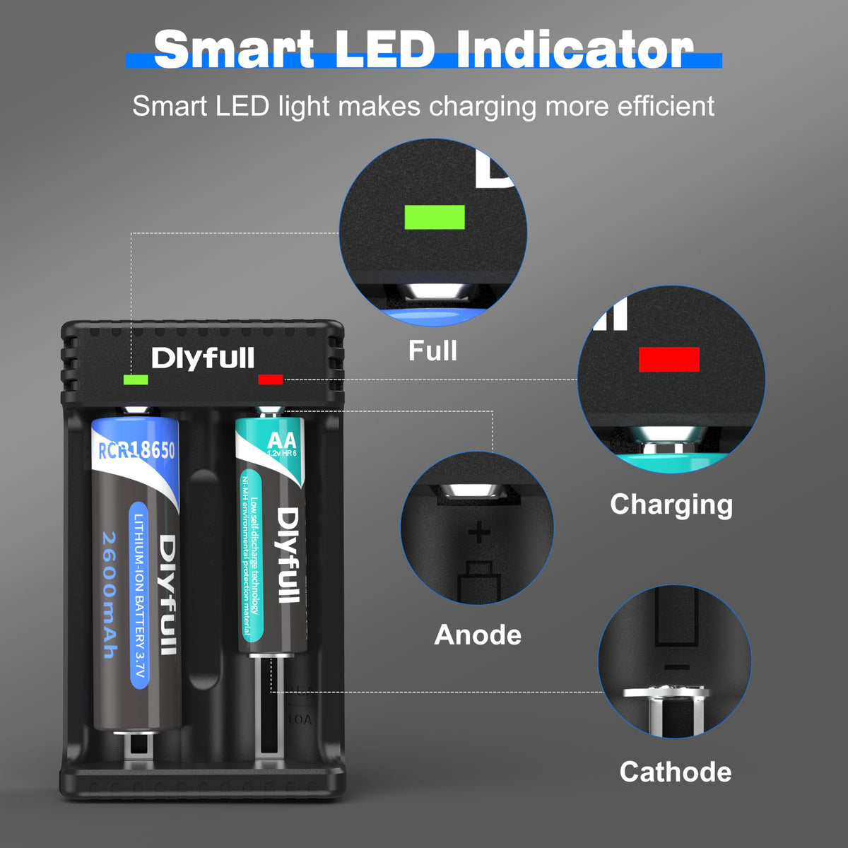 Q: Can I use the Dlypow charger for fast charging my batteries?A: Yes, the Dlypow 18650 Battery Charger allows for high-efficiency charging, providing up to 1000 mAh charging speed depending on the battery length. This feature helps to save time while ensuring efficient charging.