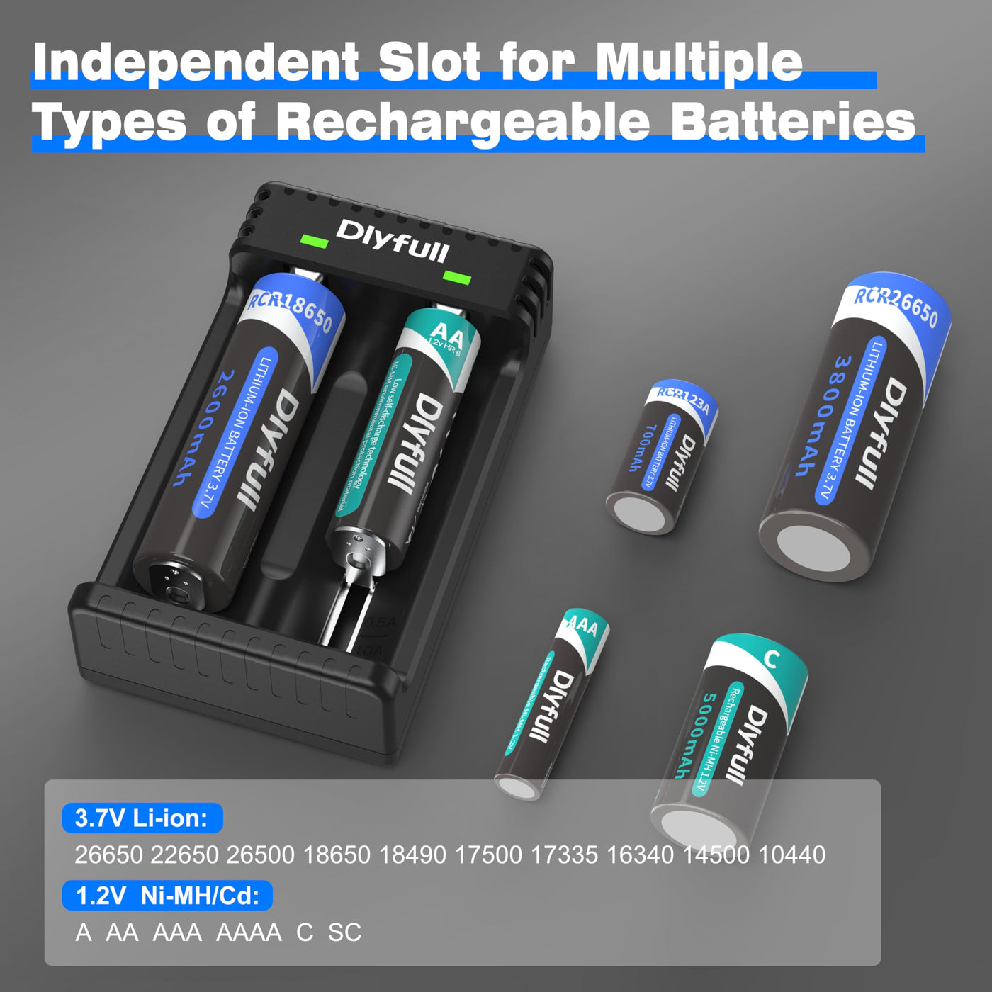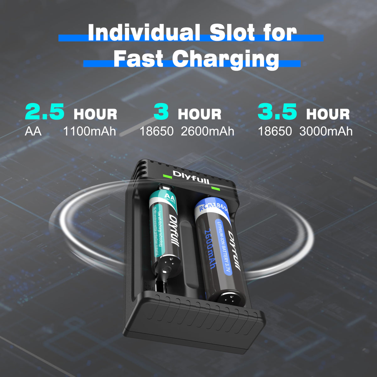 Universal 18650 Battery Charger With Smart Fast Charge, 2 Bay Battery Charger For 3.7V Lithium Ion Rechargeable Batteries 26650