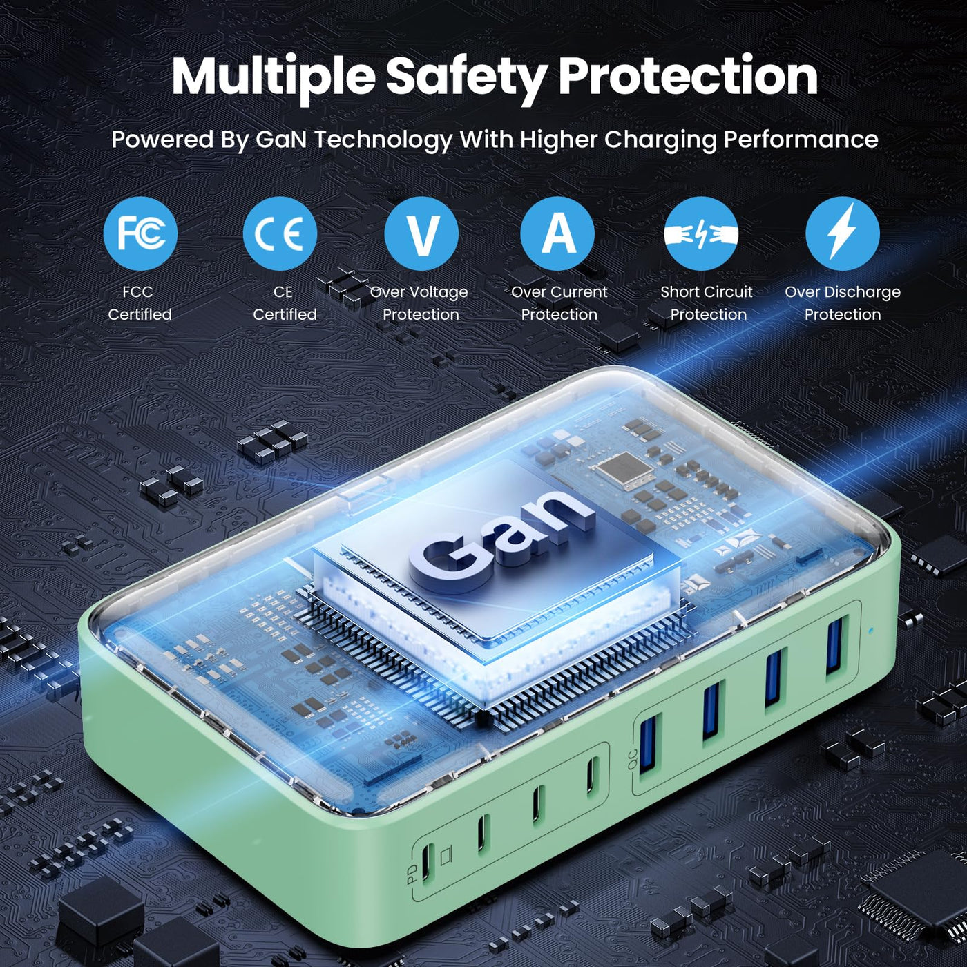 Usb C Charger 105W Usb C Charger Block,Upgraded Gan Iii 8 Port Fast Charging Station Hub,Pd 65W Laptop Charger Adapter Compatibl