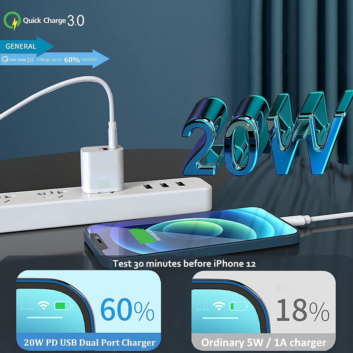 Q: How fast does the 20W charger charge my devices?A: The 20W USB-C Wall Charger Block provides a total output that is up to 4 times faster than standard 5W chargers. For example, it can recharge iPhone 12 and earlier models significantly quicker, making it an efficient choice for fast charging.