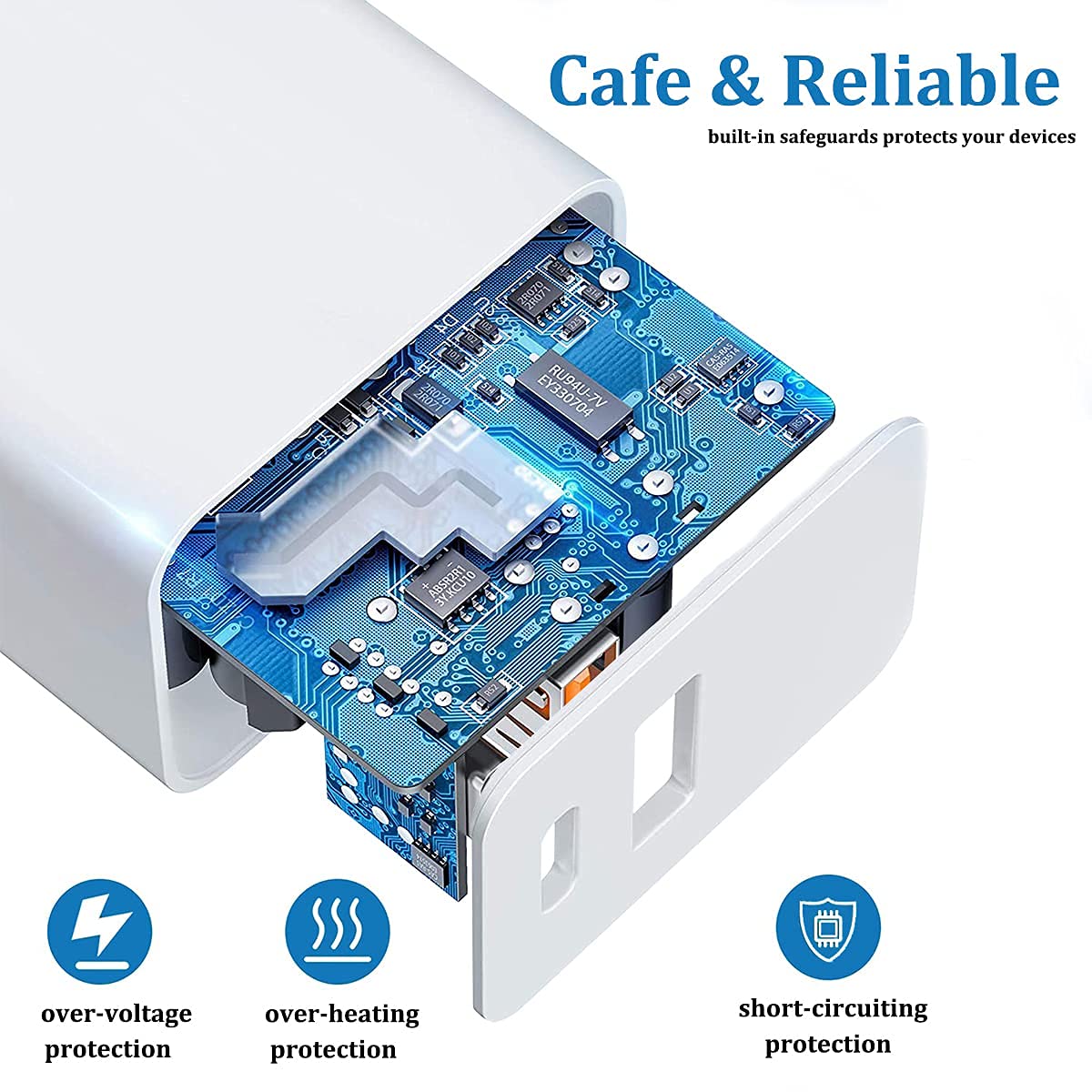 Q: Does the charger come with a built-in protection system?A: Yes, the USB-C Wall Charger Block is designed with built-in protection features that safeguard your devices against excessive current, overheating, and overcharging, ensuring safe and reliable charging.