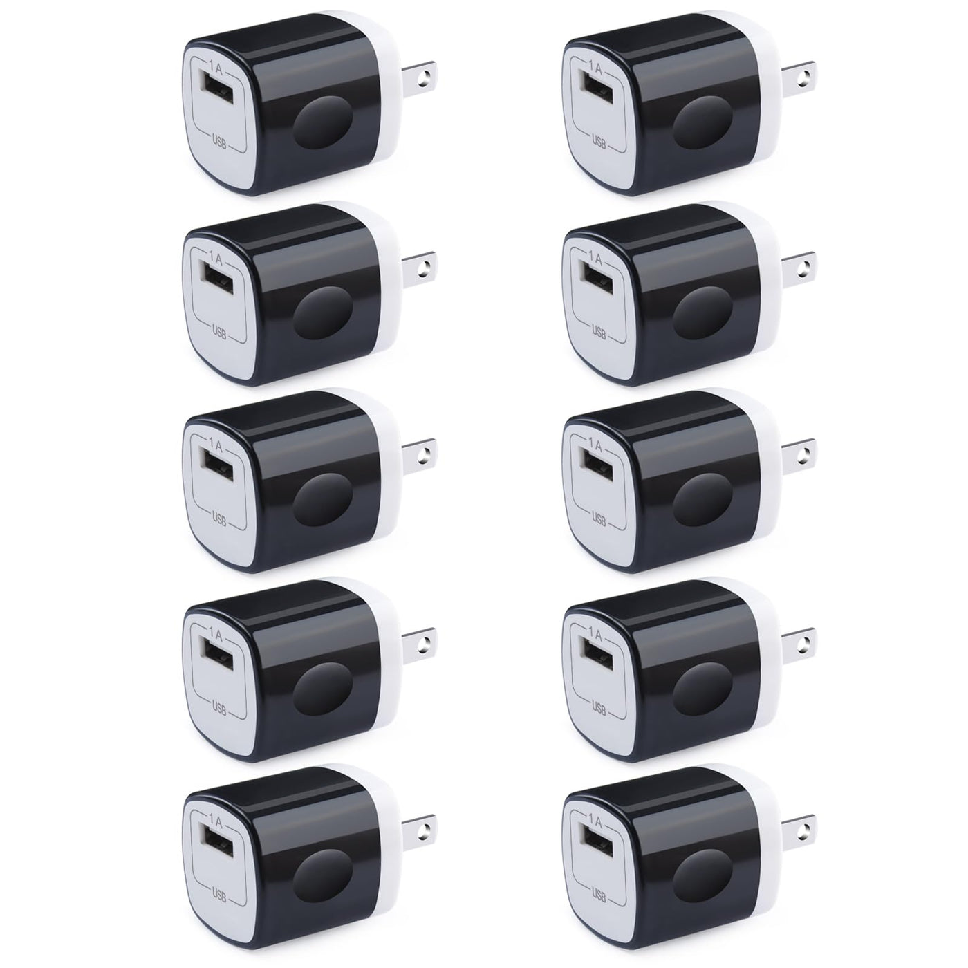 Usb Charger Adapter, 1A Cube Charger Block 10Pc Single Port Wall Outlet Charge Usb Wall Plug Compatible Iphone 16/15/14/13/12/11
