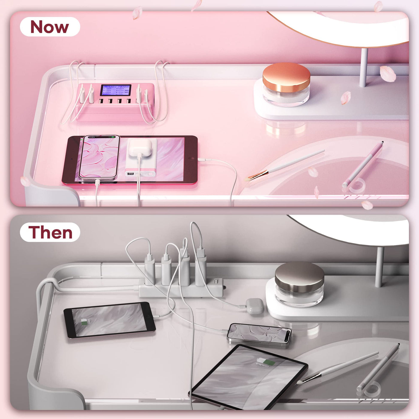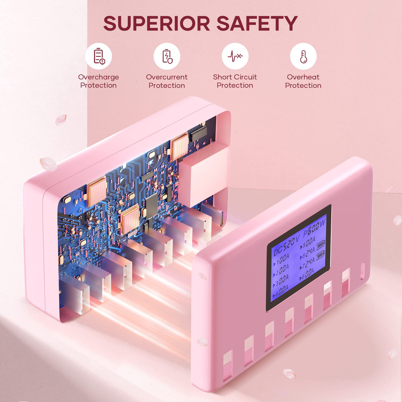 Keep The Desktop Tidy And Neat, Your Great Spirit And All Day Grace Is Delivered. It Charges Up To 8 Devices All Together At Once. Truly And Effectively Betters Your Everyday Life. Intelligent Lcd Digital Display Technology Automatically Detects And Recognizes The Current Of Each Port On The Screen, Makes Your Everyday Charging Easily And Visually. Hand-Crafted Matte Finish, High-Resolution Lcd Display, 8 Ports With Type C, And Cool-Blue Light Screen Combined To Make It A Truly Premium Usb Charger.