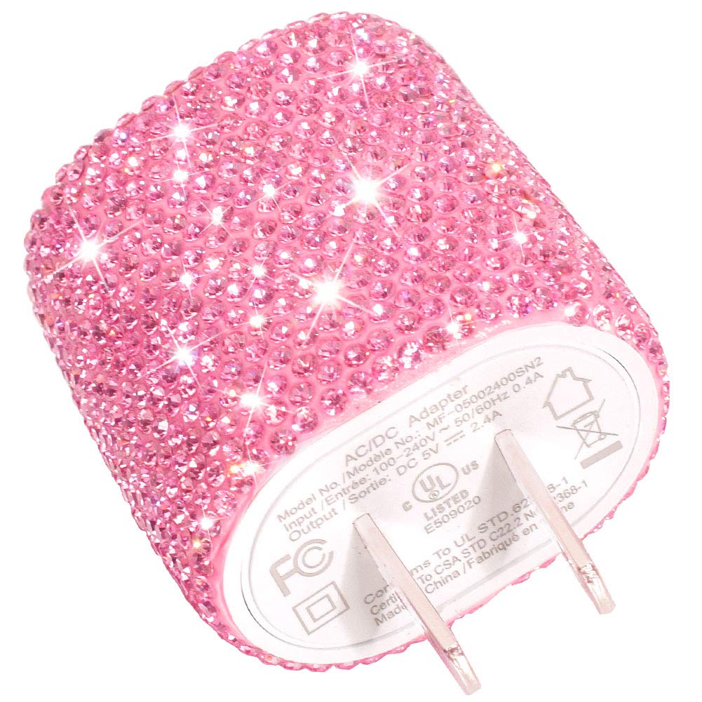 Usb Wall Charger Bling 5V/2.4A 24W Dual Port Fast Charger Plug Cell Phone Block Adapter Pink For Iphone Android Samsung Ipad Tablet Etc.