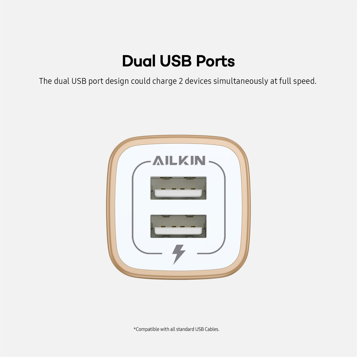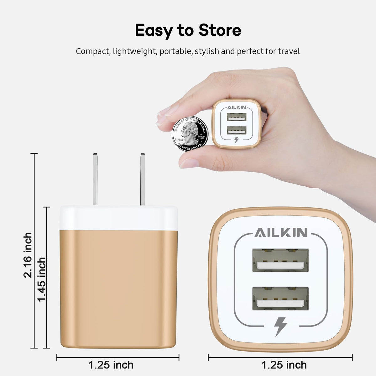 Q: Can I charge multiple devices at once with this charger?A: Yes, the AILKIN USB Wall Charger features dual USB ports, allowing you to charge two devices simultaneously at high speed, making it convenient for home, office, or travel use.