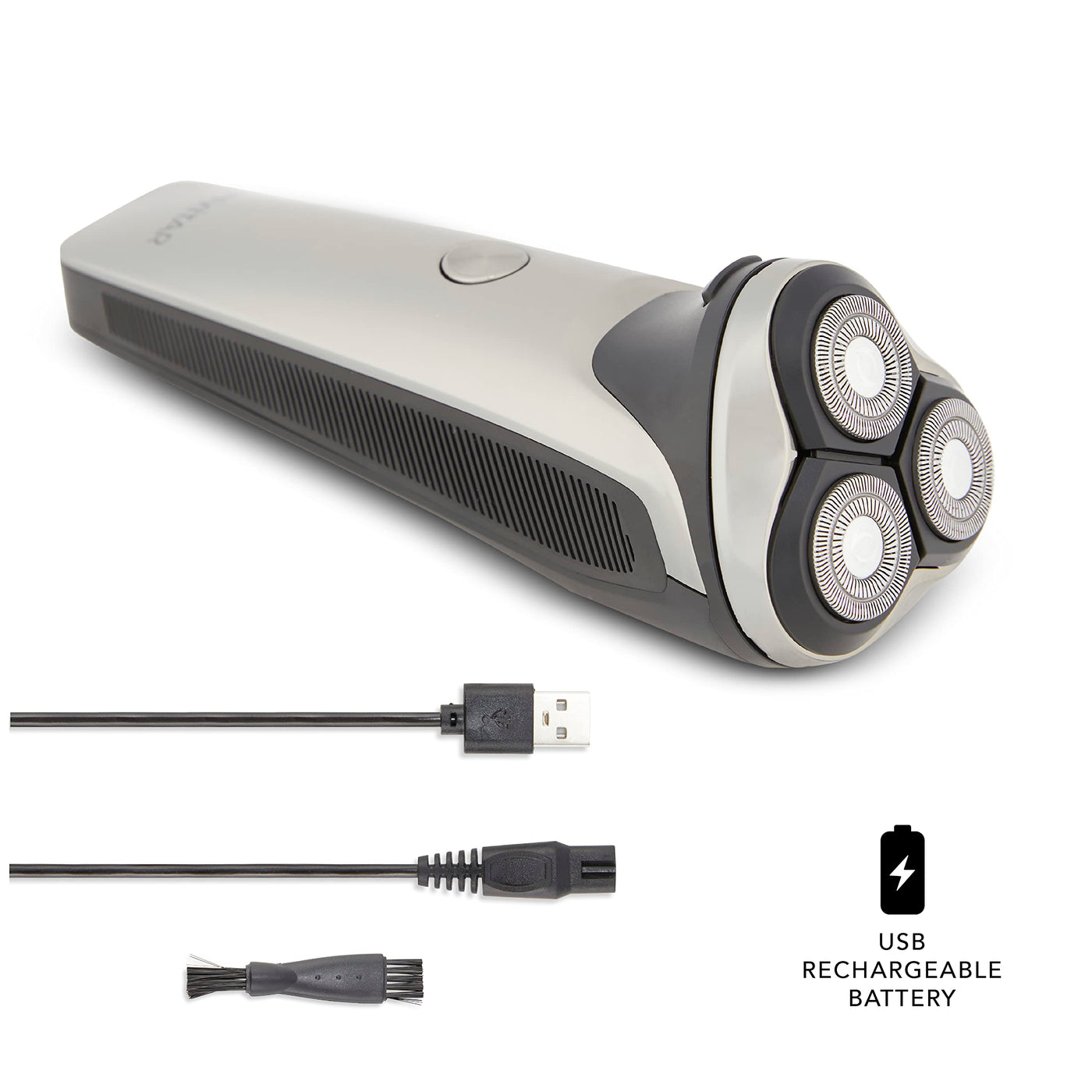 Q: What type of battery does the VIVITAR shaver use?A: The VIVITAR 3-Head Rotary Shaver utilizes a USB rechargeable lithium-ion battery. This allows for convenient charging using any USB port, whether from a laptop, power bank, or car charger.