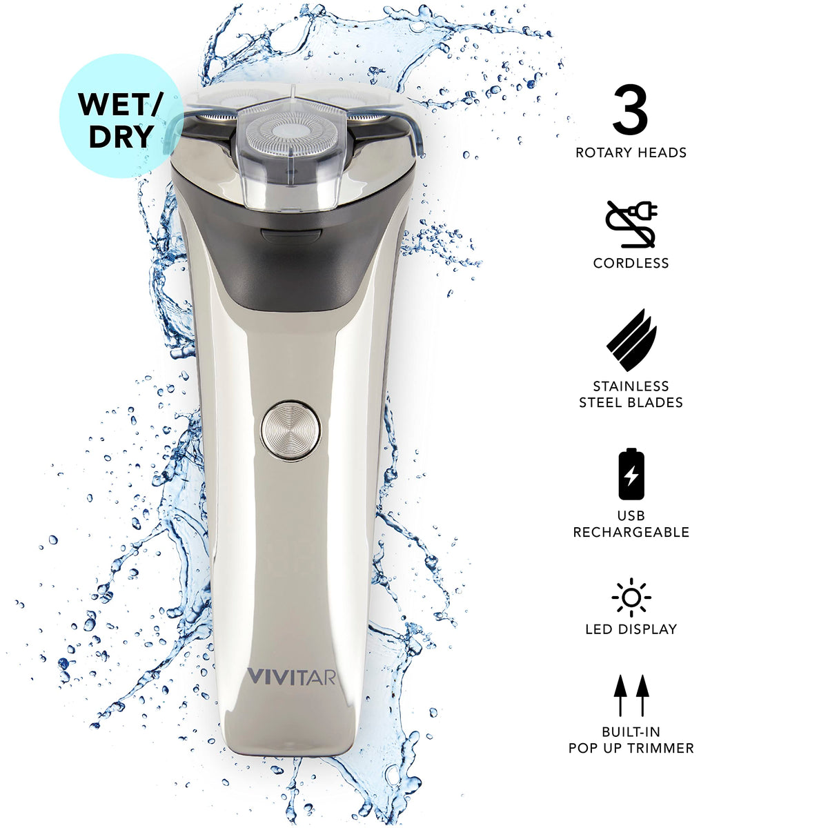 Looking For A Grooming Tool That Will Revolutionize Your Shaving Routine? Look No Further Than The Vivitar 3-Head Rotary Shaver! With Precision-Engineered Stainless Steel Blades, This Shaver Provides A Smooth And Comfortable Shave Every Time. And With The 3 Rotary Heads That Adjust To The Contours Of Your Face, You Can Reach Even The Most Difficult Areas For A Close And Clean Shave.But That'S Not All, Our Shaver Also Comes Equipped With An Led Display That Shows You The Remaining Battery Life And Duration Of Your Shaves, So You'Ll Always Have Enough Power For A Great Shave. Plus, With Its Wet/Dry Capability, You Can Use It In The Shower Or Bath For A More Comfortable Experience Or Dry For A Quick Touch-Up.We'Re Confident That Our 3-Head Rotary Shaver Will Exceed Your Expectations And Provide You With A Smooth, Comfortable Shave Every Time. It'S The Perfect Grooming Tool For Men Who Want To Look And Feel Their Best.So Why Wait? Order Now And Experience The Convenience And Precision Of Our 3-Head Rotary Shaver For Yourself.