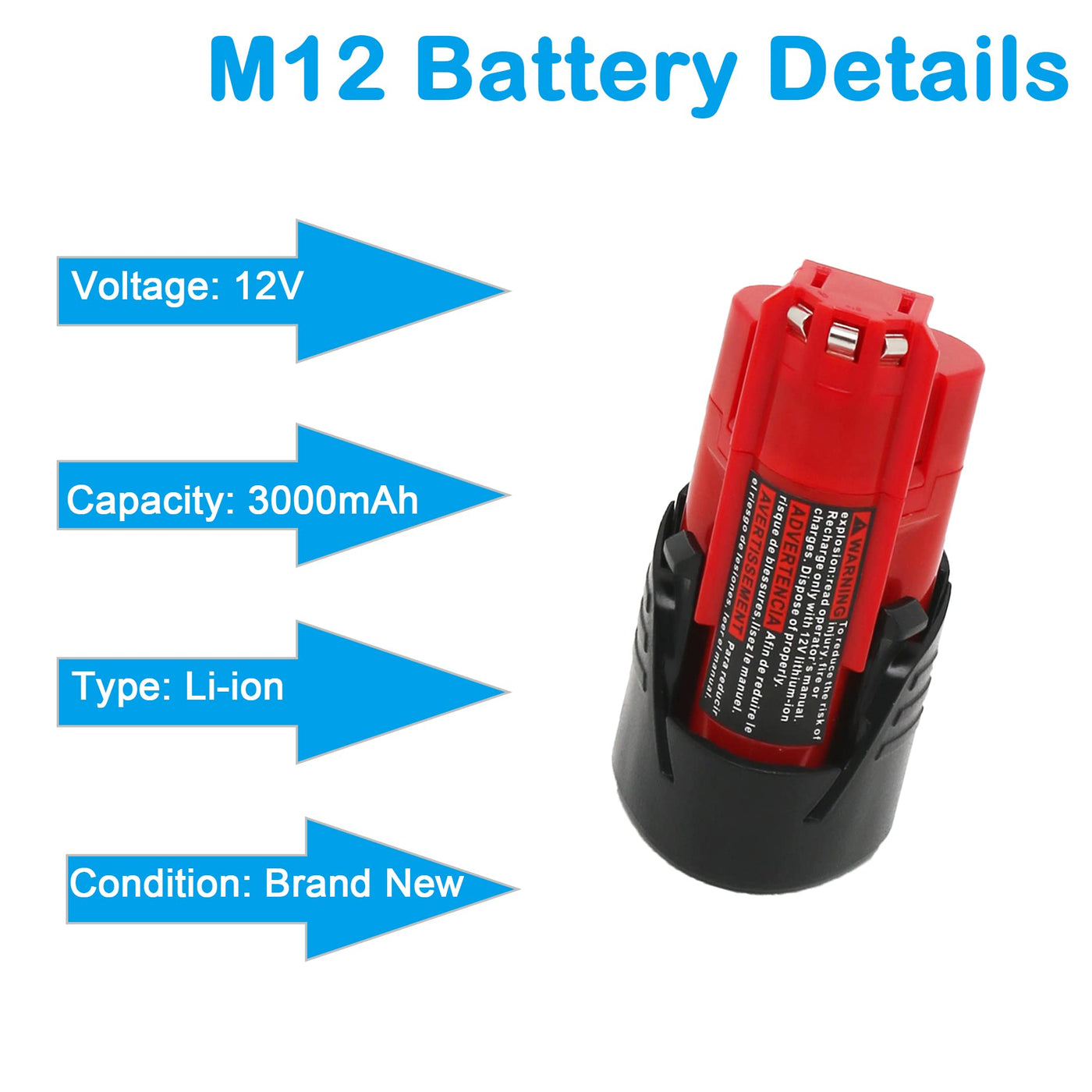 Volt1799 2 Pack 3.0Ah Replacement M12 Batteries And Rapid Charger For Milwaukee 12V Tools