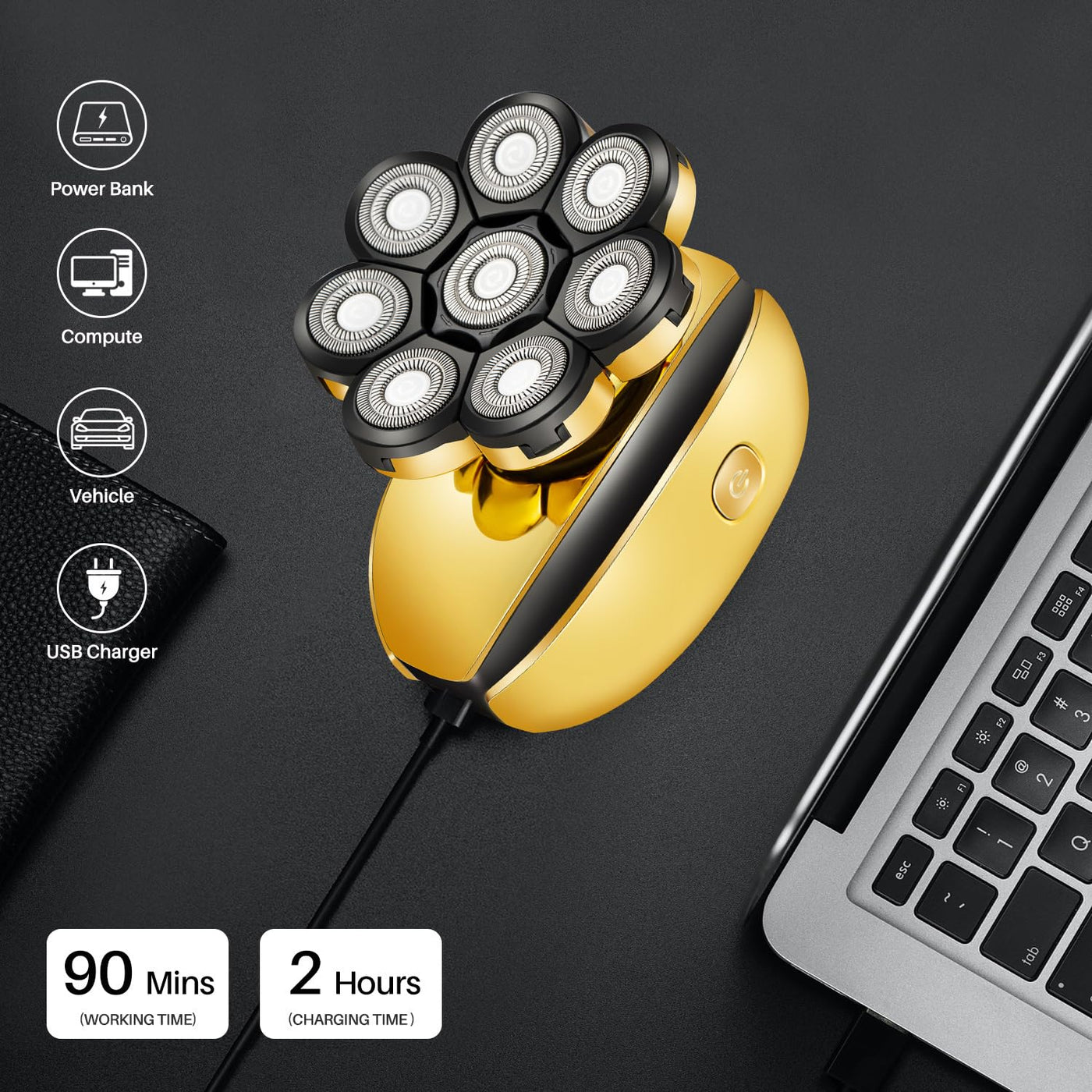8D Bald Head Shavers For Men 1.Skin-Friendly And Durable Blades Are Used On All Heads Of Our Beard Trimmer. Automatically Adjusts To All Face, Neck And Head Angles, Even Chin. 2.The 8-Head Rotary Electric Shaver Is Ergonomically Designed To Make Shaving Easier And More Comfortable. Package Content: 1*Electric Shaver 1*Nose & Ear Trimmer 1*Hair Clippers Head 1*Soft Facial Massage Brush 1*Facial Cleaning Brush 3*Limit Combs(3Mm/5Mm/7Mm) 1*Cleaning Brush 1*Usb Charger 1*Head Protective Cover 2*Replacement Shaver Head Specifications: 1. Charging Time: 2 Hours 2. Working Time: 90 Mins