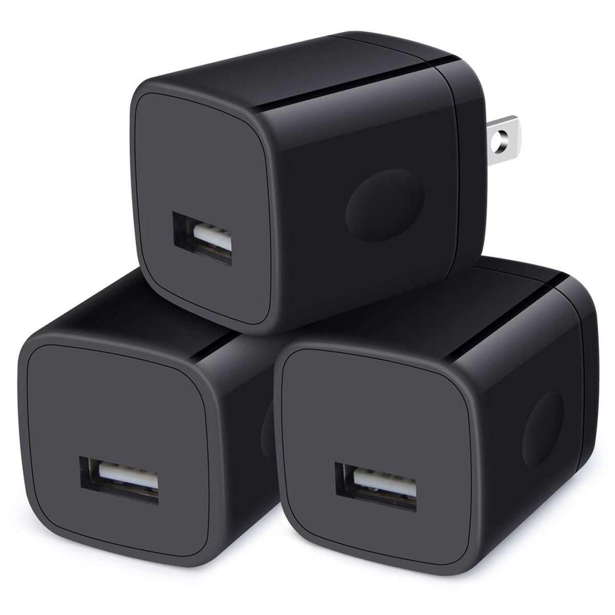 Wall Charger Cube,1A/5V Single Port Usb Wall Plug 3 Pack Travel Black Charging Block Box Adapter Compatible Iphone,Samsung Galax