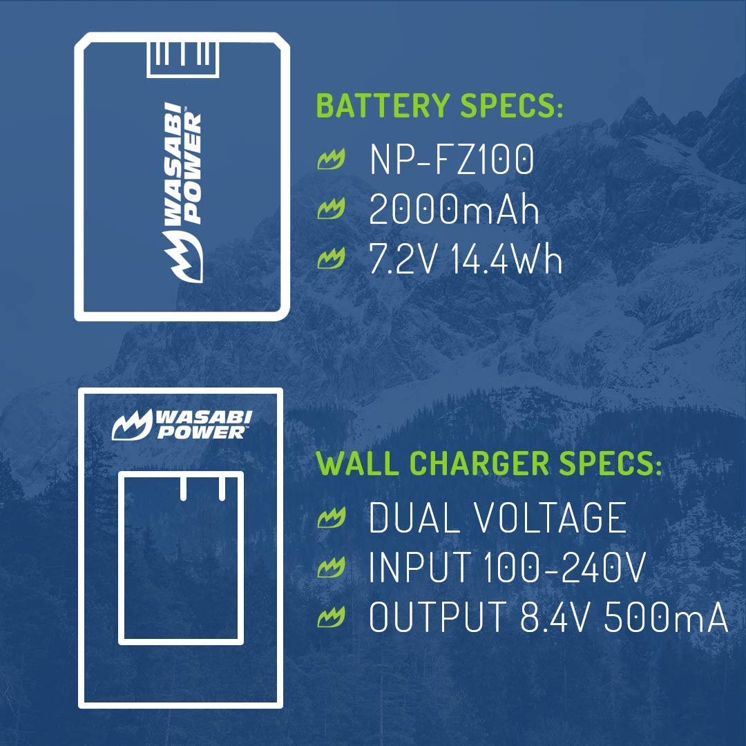 Q: How long does the Wasabi Power NP-FZ100 Battery last?A: The Wasabi Power NP-FZ100 Battery has a capacity of 2000mAh, providing longer run-time and battery life for your Sony cameras. This capacity allows for extended shooting sessions without frequent recharging.