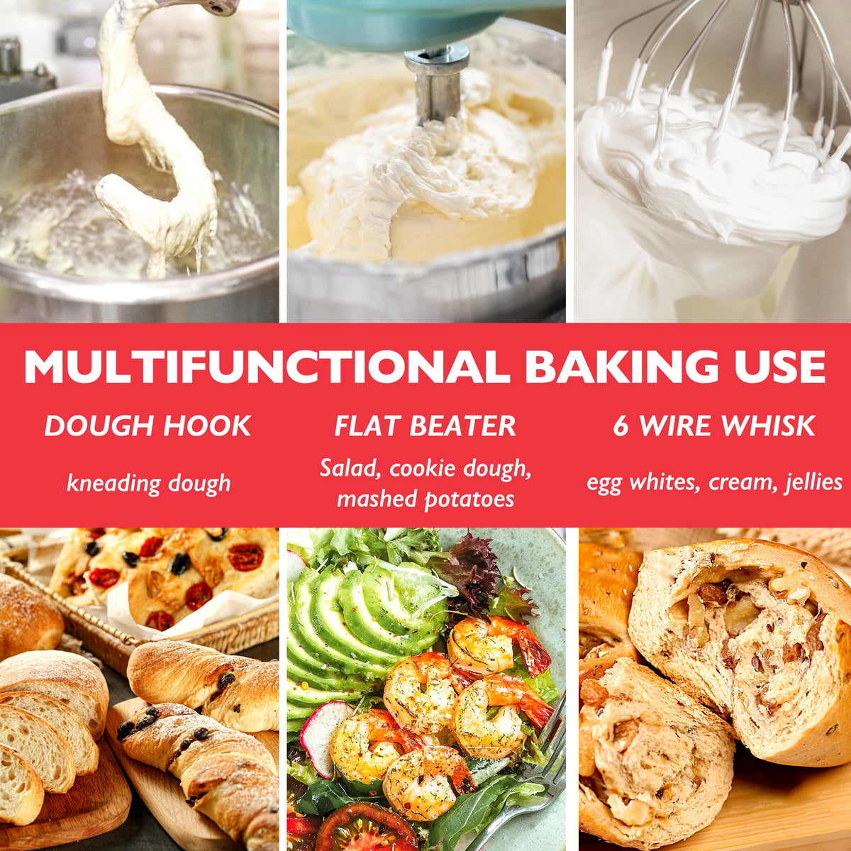 Q: Can I use these accessories for different baking tasks?A: Absolutely! The Wiselet Stainless Steel Accessories are versatile and can handle a variety of baking tasks, from whipping cream and mixing batter to kneading dough, helping you achieve professional results.