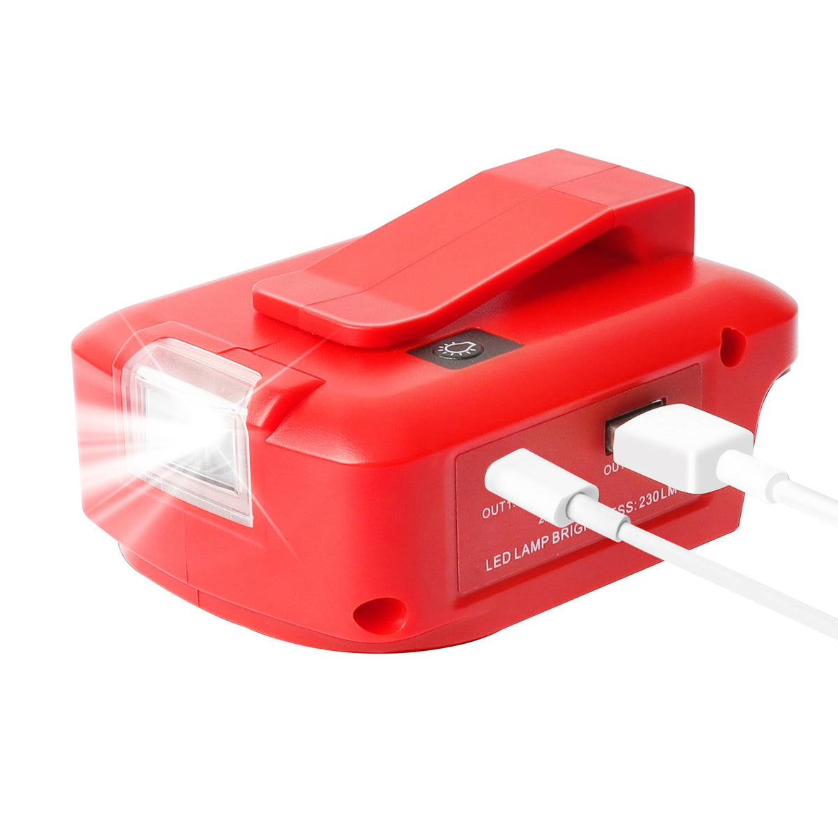 Q: How does the built-in LED light work on this power adapter?A: The built-in LED light on the Xinriga Power Adapter provides bright, reliable lighting, making it useful for work in low-light conditions or for illuminating your campsite at night.