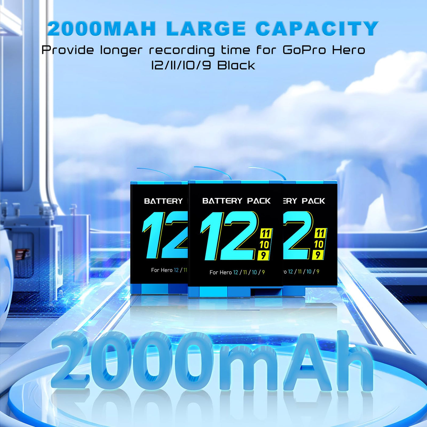 Yeewanke For Hero 12/11/10/9 Battery 2 Pack 2000Mah And Usb Storage 3 Channel Fast Charger Fully Compatible With Gopro Hero 12,