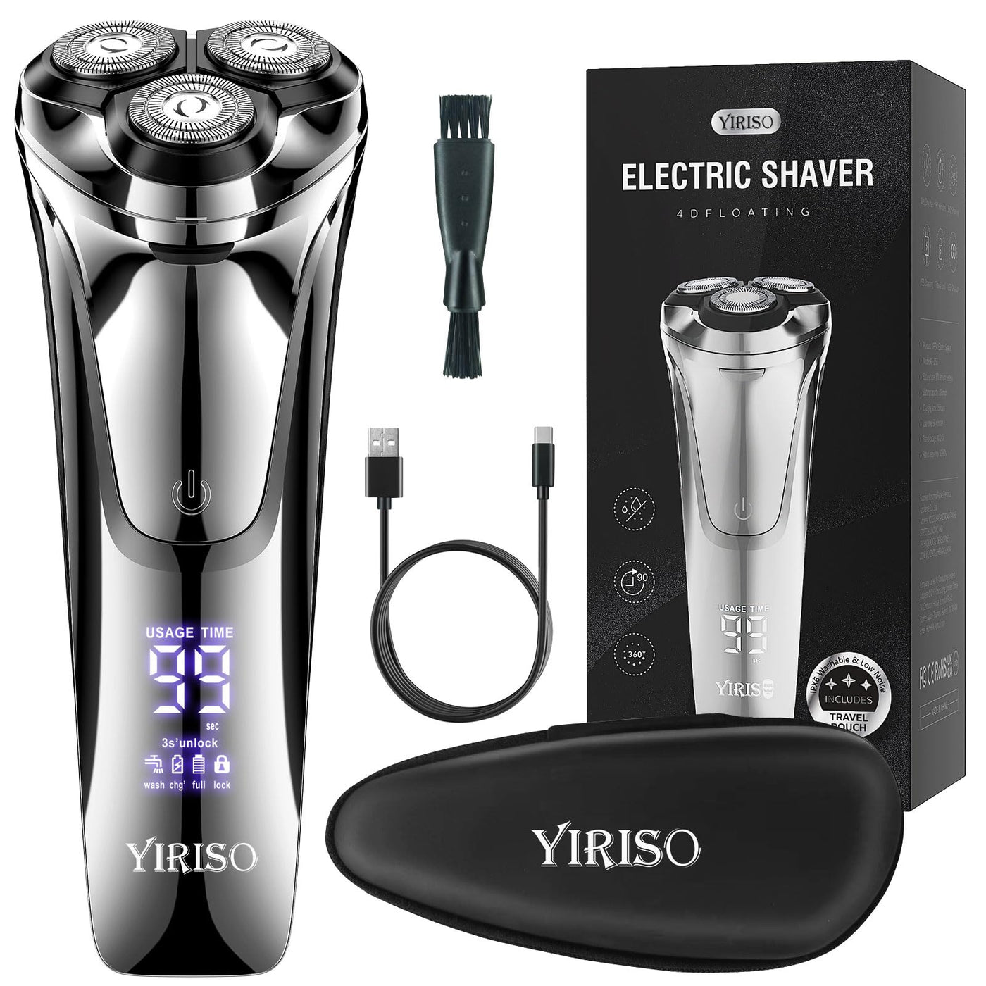 About Yiriso Electric Shaverprecise Shaving System - The Well-Designed Shaving System Of Premium Stainless Steel Blades With A Self-Sharpening Function, So That It Will Be Sharper With Daily Use.Close-To-Face Double Track Cuts - With The Design Of A Double-Track Cutter, It Can Cut More Facial Hair One Time, So That Saving Time Obviously.Ergonomic V-Track Shaving Angle - 152-Degree Max Follows The Contour Of Your Face Better, You Will Feel The Smoothness When It Slides On Your Skin.100% Waterproof - This Electric Razor Is Designed To Wash In Water Fully, It Allows To Shave Both Dry And Wet.Lcd Digital Power Display - Featured With A Visible Lcd Screen, You Can Check The Available Electric Capacity When Shaving The Beard. So That Recharge It Timely.All These Considerate Designs Is To Bring You A Fast And Painless Outstanding Shaving Experience.