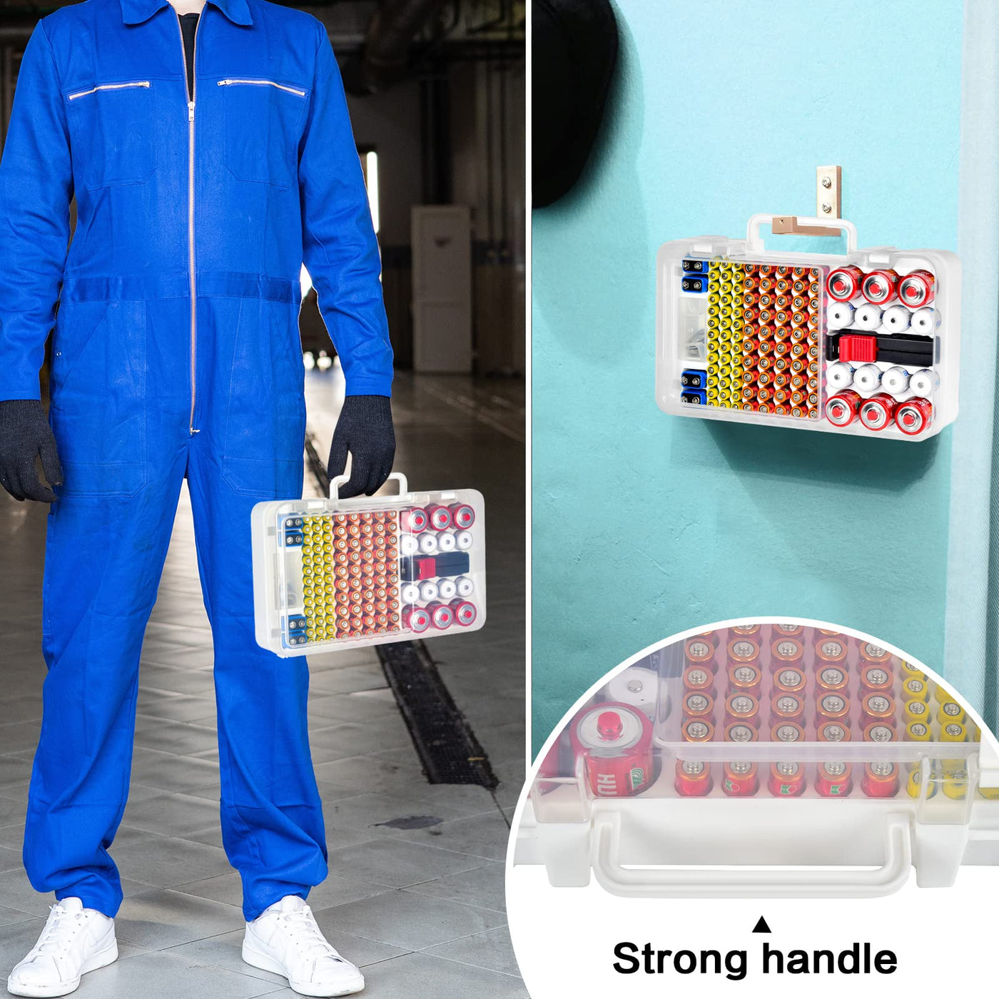 Q: Is the battery organizer portable?A: Absolutely! The battery storage case is compact and features a sturdy handle, making it easy to carry to different locations.