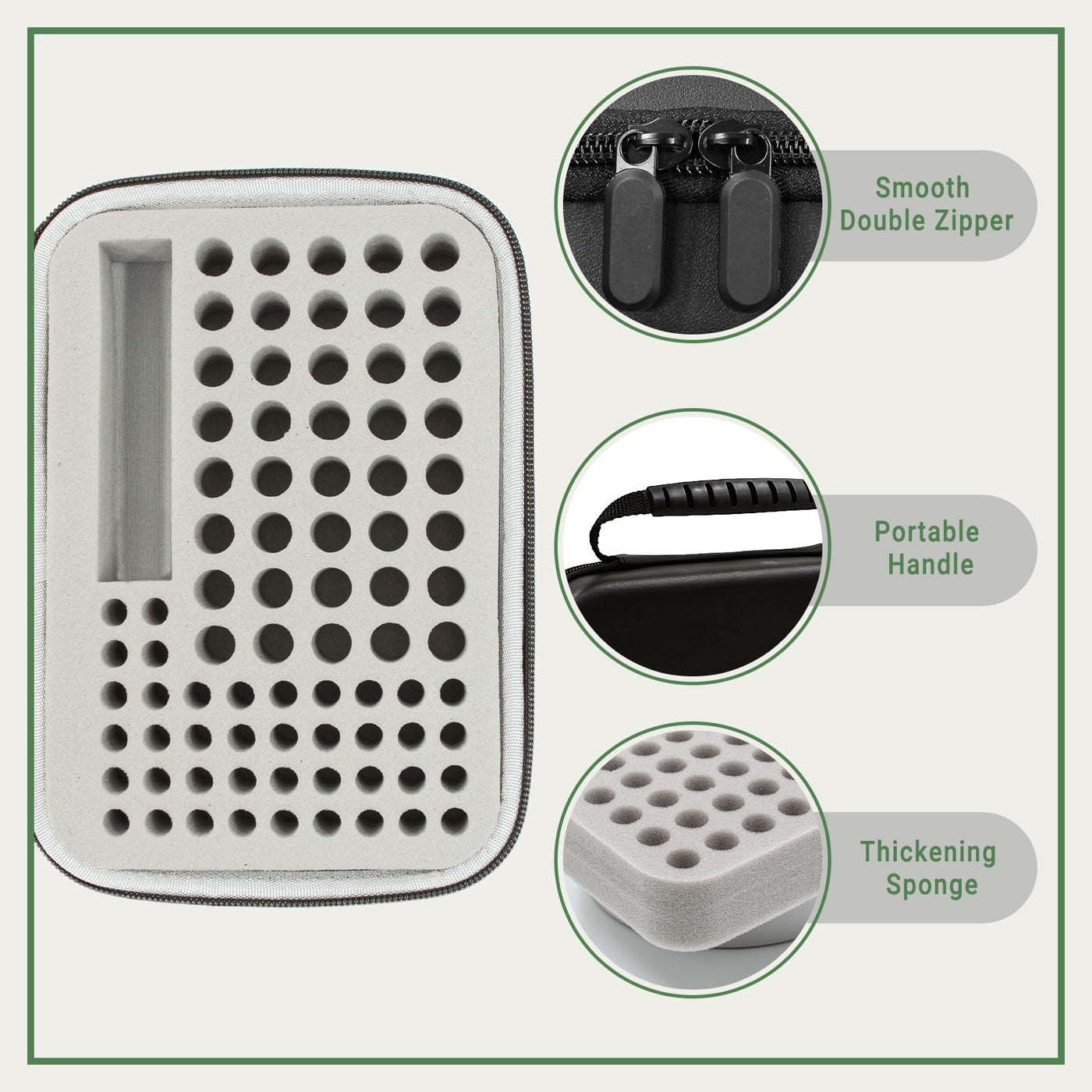 Q: What features make the zipper of the battery organizer reliable?A: The battery organizer features a sturdy black zipper with a green pull tab, designed for smooth operation and durability, ensuring it won't easily break or get stuck.