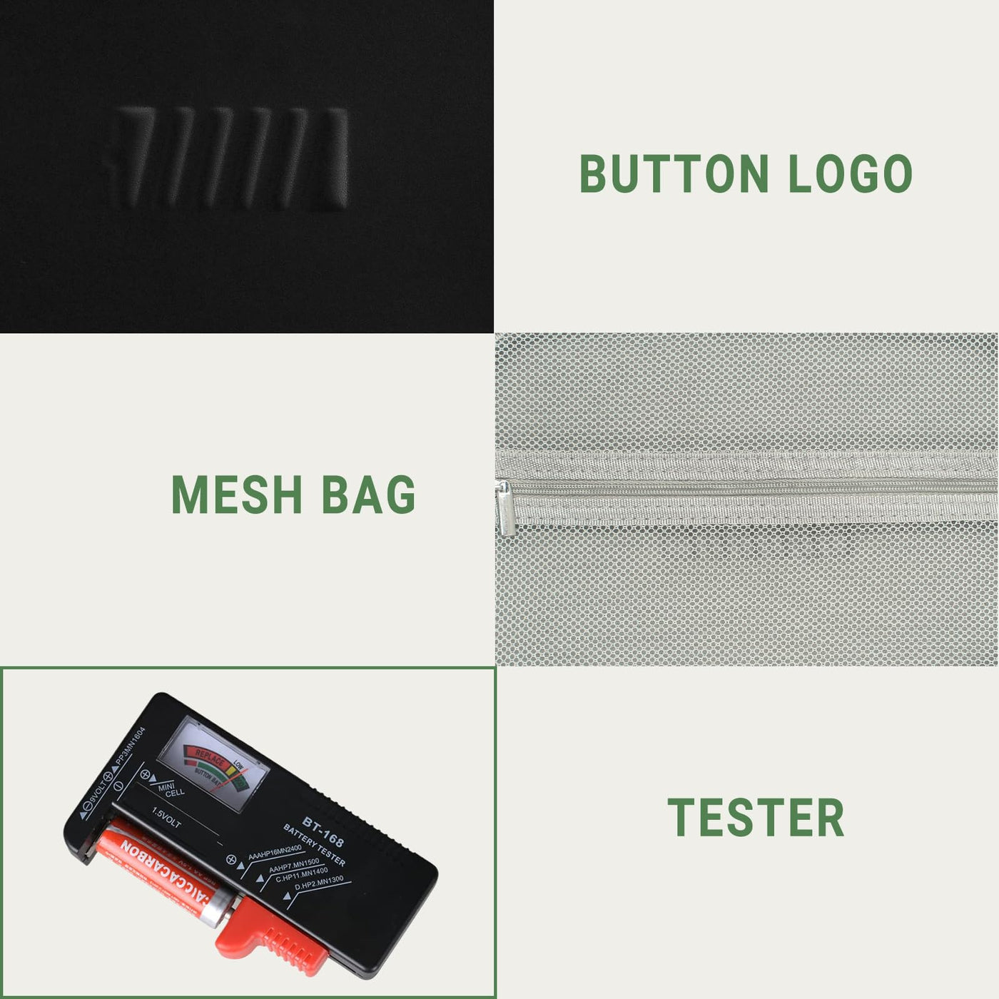 Q: Does the battery organizer come with a battery tester?A: Yes, the battery organizer includes a battery tester that allows you to measure the remaining power of your batteries, easily distinguishing between new and old batteries.