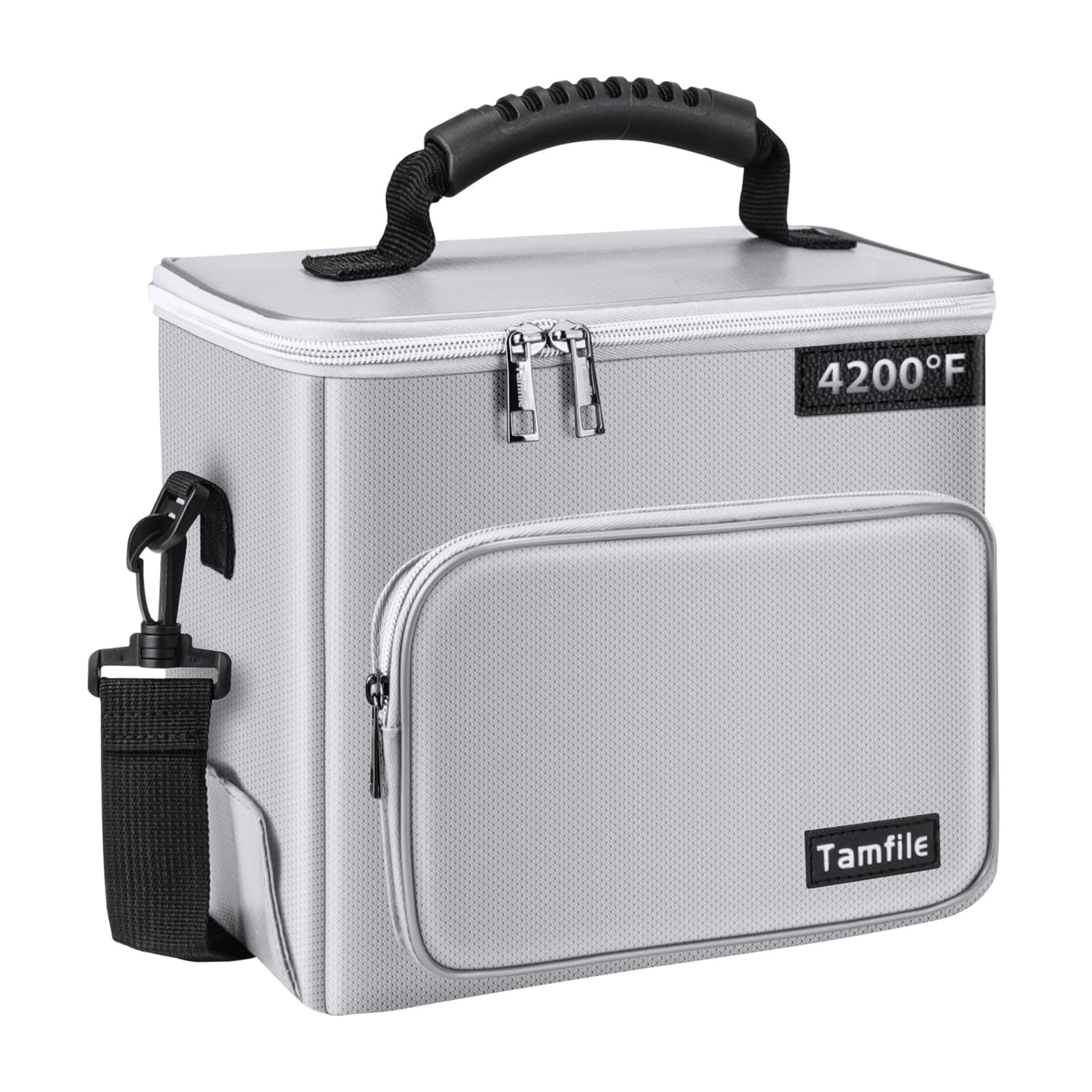 Tamfile Fireproof Lipo Battery Bag With 4200F Heat Insulated, Ebike Lipo Bag With Pockets And Shoulder Strap,Explosionproof Lipo