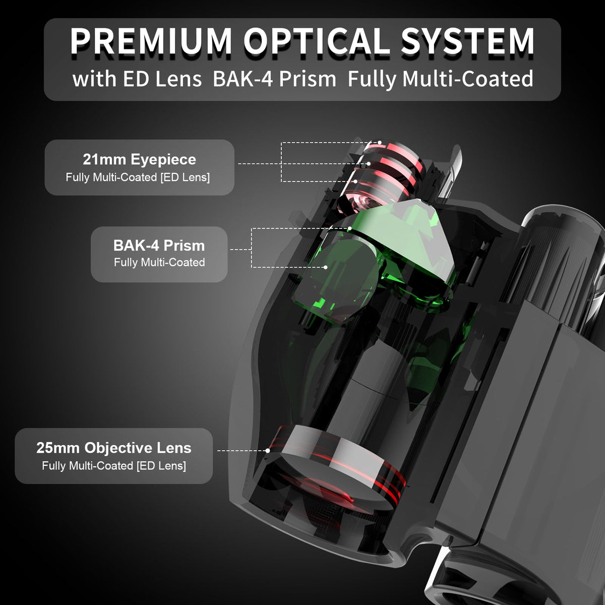 6X25 Compact Binoculars, Bak-4 Prism 9.5 Wide Field Of View 21Mm Eyepiece With Ed Lens, Black