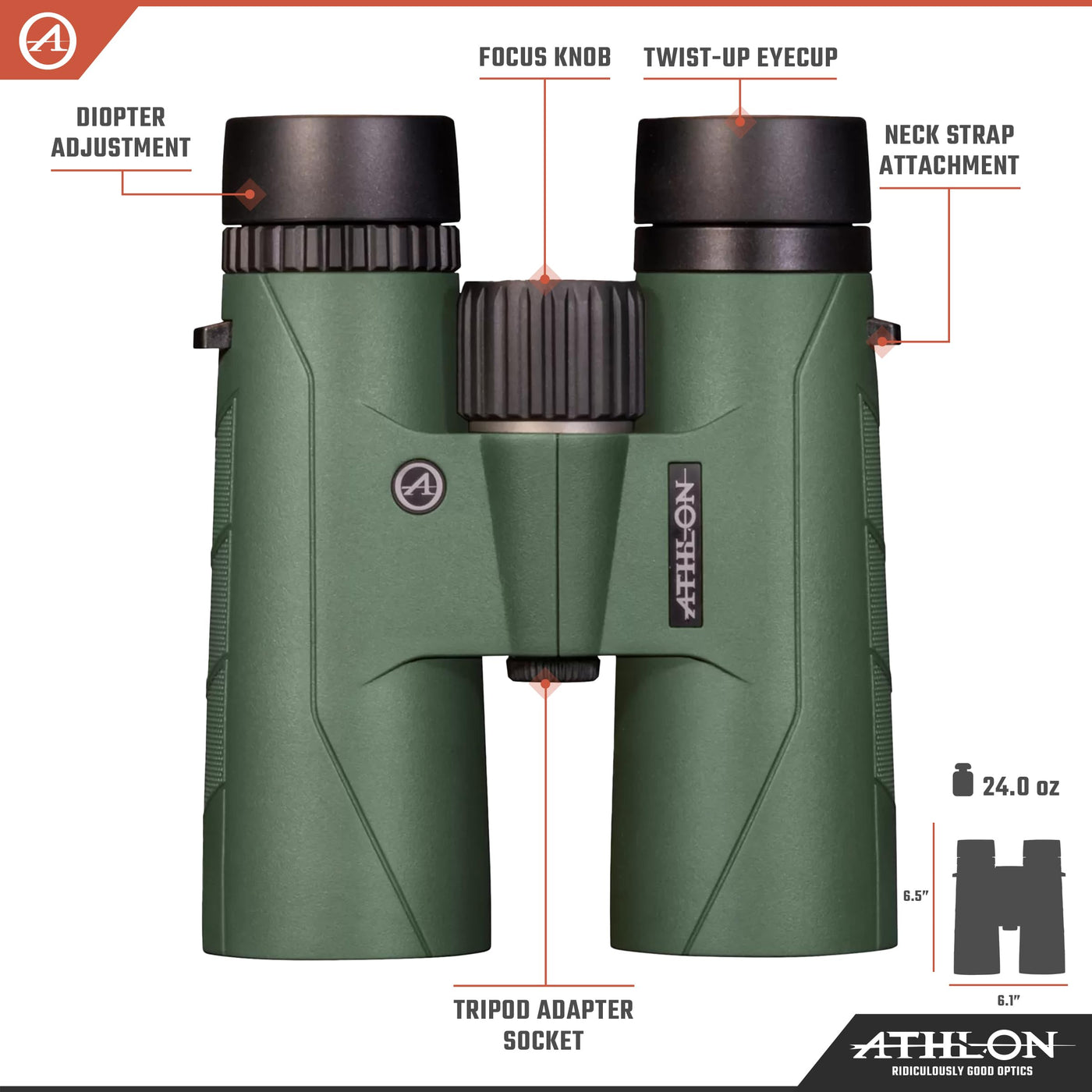 Q: What makes the Athlon Optics Forerunner 10x42 Binoculars ideal for outdoor activities?A: The Athlon Optics Forerunner 10x42 Binoculars are designed for outdoor enthusiasts with features like extended eye relief, durable construction, and superior optics. These binoculars provide comfortable viewing for long periods and are built to withstand various weather conditions, making them perfect for birdwatching, hunting, and sporting events.