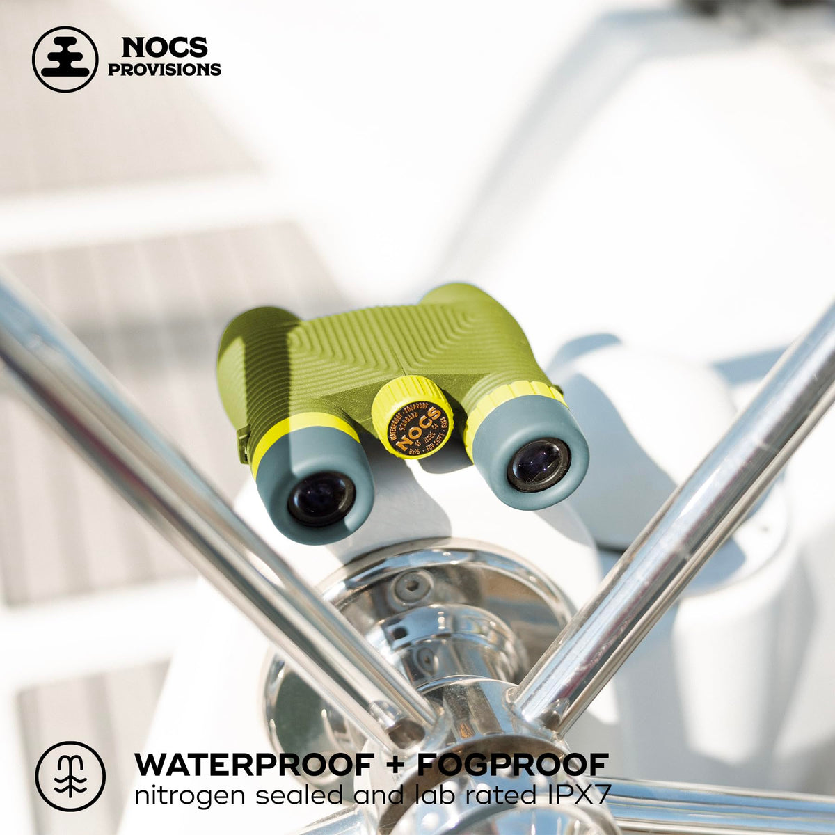 Q: What makes the Nocs Provisions Standard Issue binoculars ideal for outdoor activities?A: The Nocs Provisions Standard Issue binoculars are designed for outdoor enthusiasts with a compact and lightweight structure, weighing only 11.85oz. Their rugged, waterproof, and fog-proof features, rated IPX7, ensure durability in various weather conditions, making them perfect for birdwatching, hiking, and camping.
