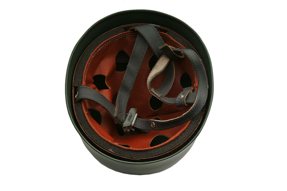 Q: How should I care for and maintain my steel helmet?A: To maintain the SZCO Supplies Steel Paratrooper Helmet, clean it with a damp cloth and mild soap, and avoid exposing it to harsh chemicals or extreme moisture to prevent rusting.