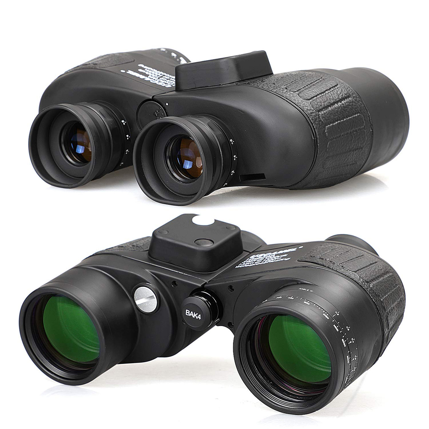 Marine10X50 Binoculars:Binoculars Floating With 10X Magnification And 50Mm Large Objective Lensfield Of View Is 396 Feet At 1000 Yards,With A5 Diopter Left And Right Diopter Ring, You Can Adjust The Distance For Better Viewing Without Glasses And For Fine Focusing The Eyecups Can Be Folded Easily You Can Operate It With Glasses High Quality Bak4 Binoculars: High Refractive Bak4 Prism Eliminates The Stray Light And Improves Color Reproduction To 9999% Green Fmc Coating Reduces The Reflected Light In The Objective Lens And Improves Light Transmission, Makes Image Brightness And Sharpness Waterproof Binoculars: Binocular Come With Nitrogen-Filled Waterproof, Fogproof Design O-Ring Sealed For Complete Waterproof And Float On Water So No Worries If Dropped Into The Water Dry Nitrogen-Purged And Sealed To Prevent Fogging And Moisture Damage In All Weather Conditions, Highly Durable Binoculars With Rangefinder & Compass:Night Vision Binoculars Illuminated Compass Built-In For Direction Location, With An Internal Rangefinder For Calculate The Distance And Size Of The Object On The Left Eyepiece Directly The Ruler And The Compass Illuminated By The Light Button, Provides The Maximum Brightness Of The Image Even In Low Light Conditions(Not Totally Dark) Attached Binoculars With Bag And Strap:It Is Easy To Carry And Store Ideal For Travel, Concerts Outdoor Activities, Bird Watching, Climbing, Hunting, Archery, Hiking, Camping, , Boating, Target Shooting, Water Sports, It Is A Perfect Holiday Gift Choicewe Offer A 30 Day Unconditional 100% Money Back Guarantee,Please Rest Assured To Buy