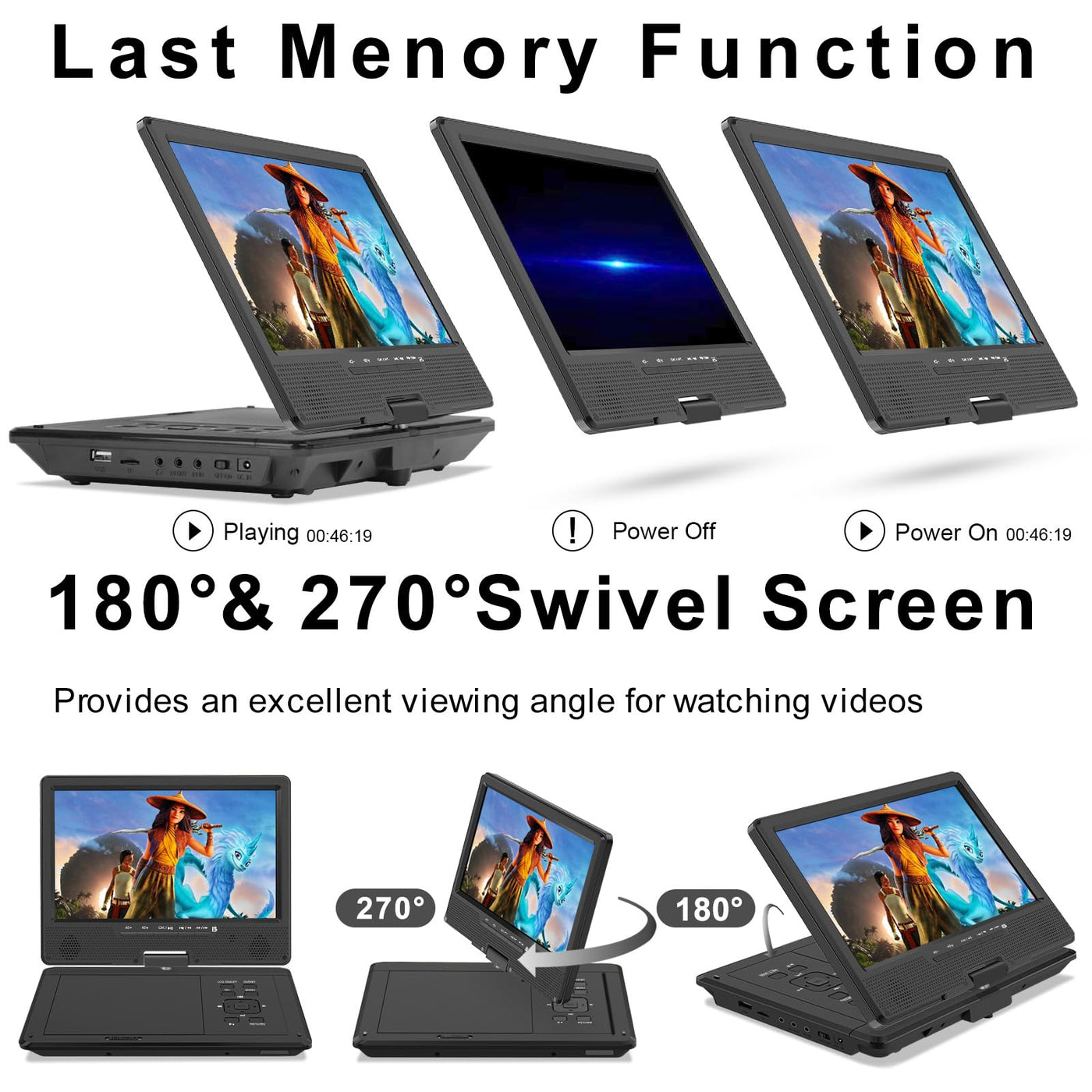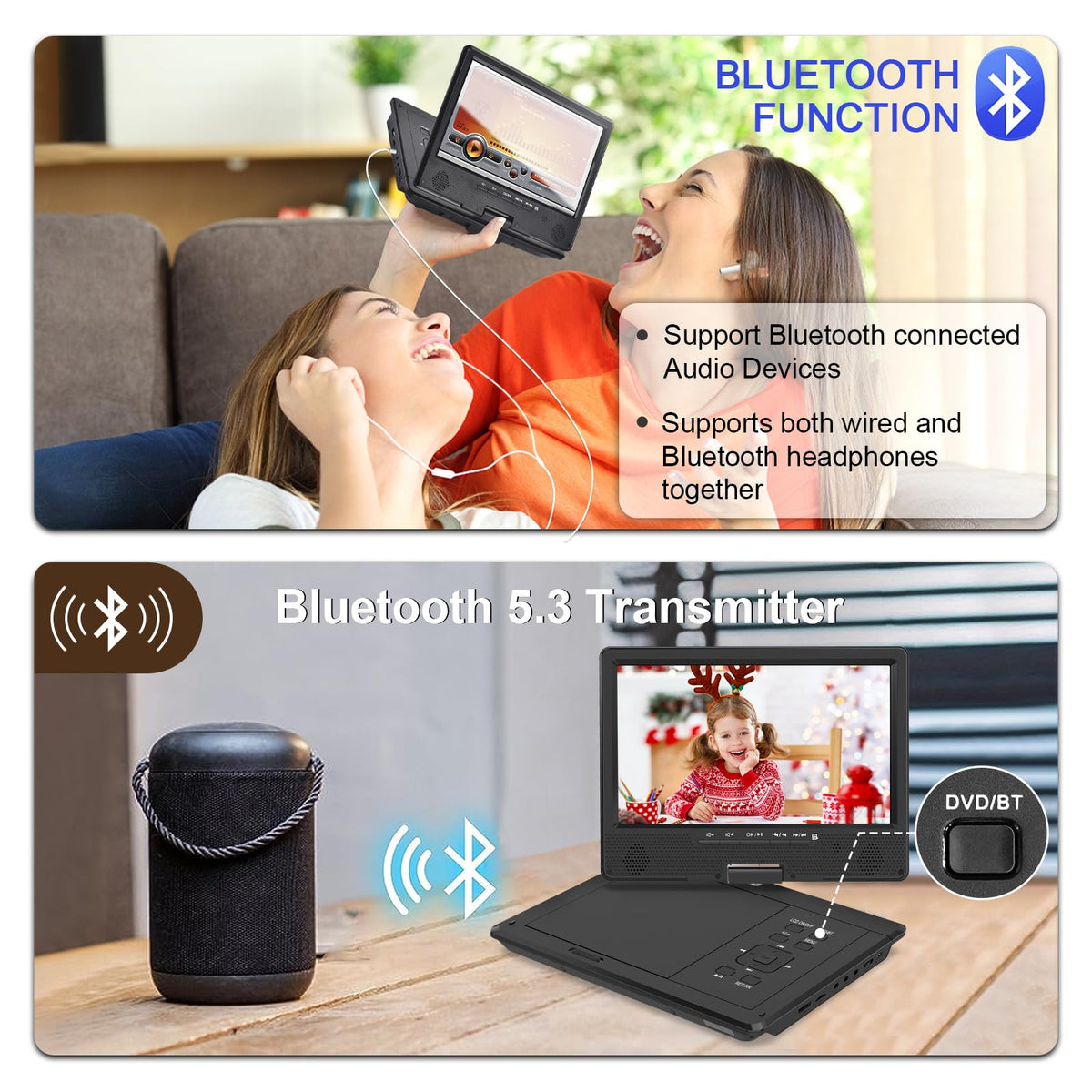 12.5'' Portable Dvd Player, Bluetooth Headrest Video Players With 10.1'' Swivel Screen, 5 Hours Rechargeable Battery, Dvd Player