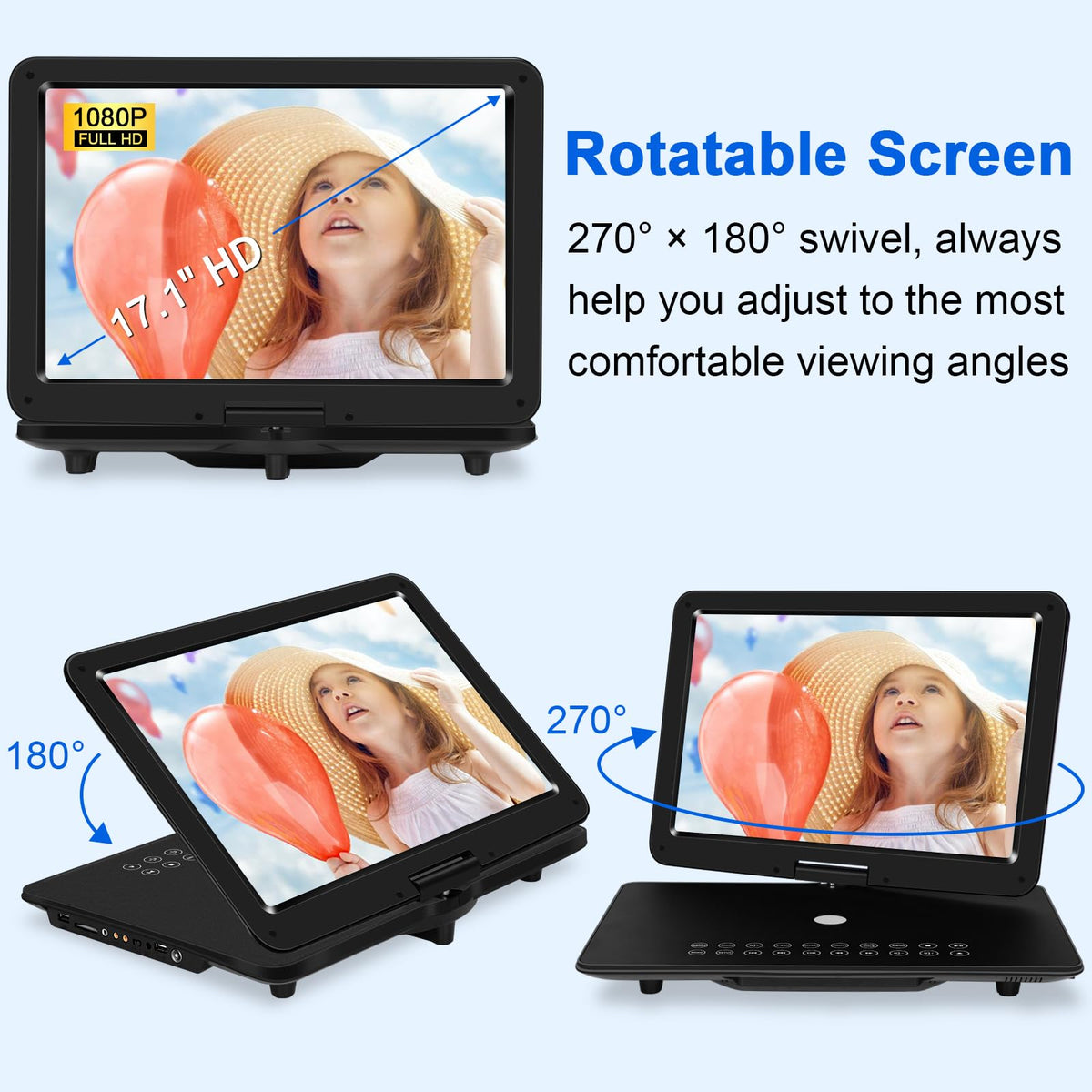 19.6'' Portable Dvd Player With 17.1'' Hd Swivel Screen, 4H Rechargeable Battery, Support Usb/Sd Card/Discs/Sync Tv, Dual Stereo