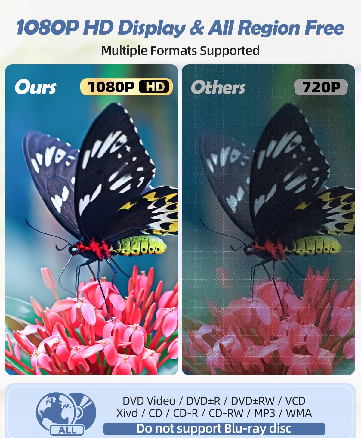 Arafuna Dvd Players For Tv Hdmi Small Dvd Player With All Region Free, 1080P Hd Mini Dvd Player For Smart Tv Support Cd/Dvd Usb/