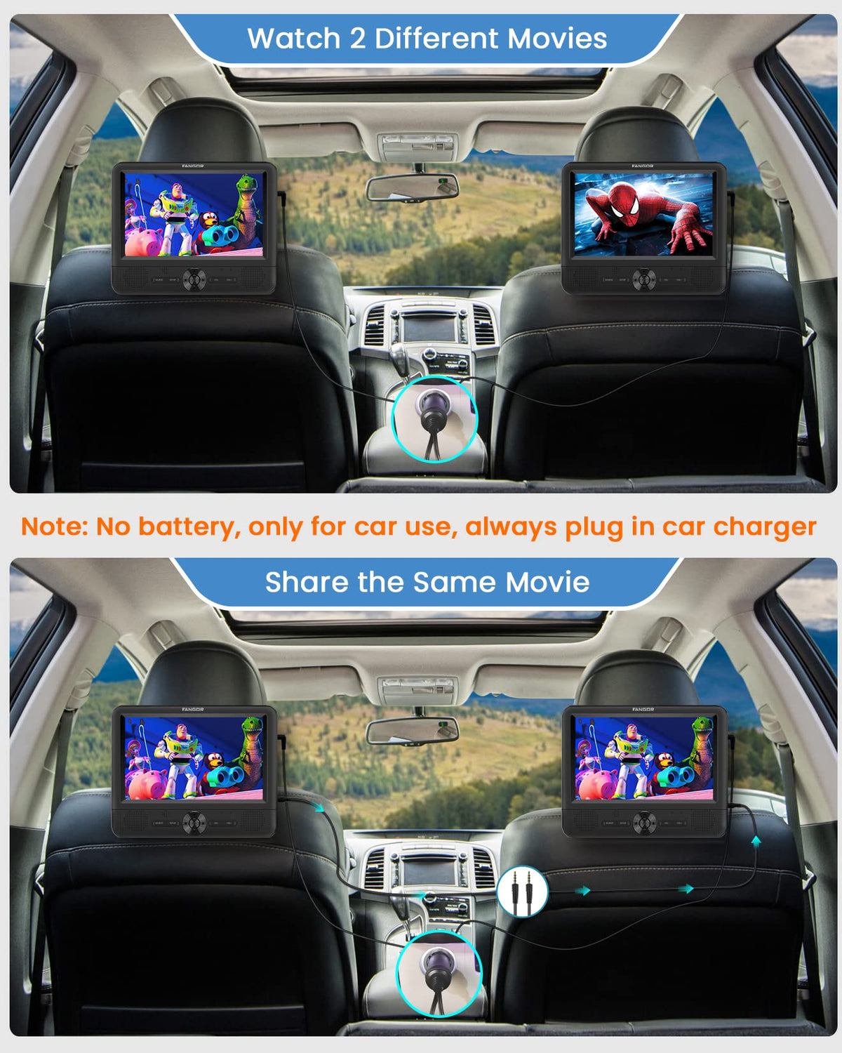 Fangor 7.5'' Dual Portable Dvd Player For Car, Car Dvd Player Dual Screen Play A Same Or Two Different Movies With Headrest Strap, Regions F-R-E-E, Support Last Memory, Av Out & In, Usb/Sd Card