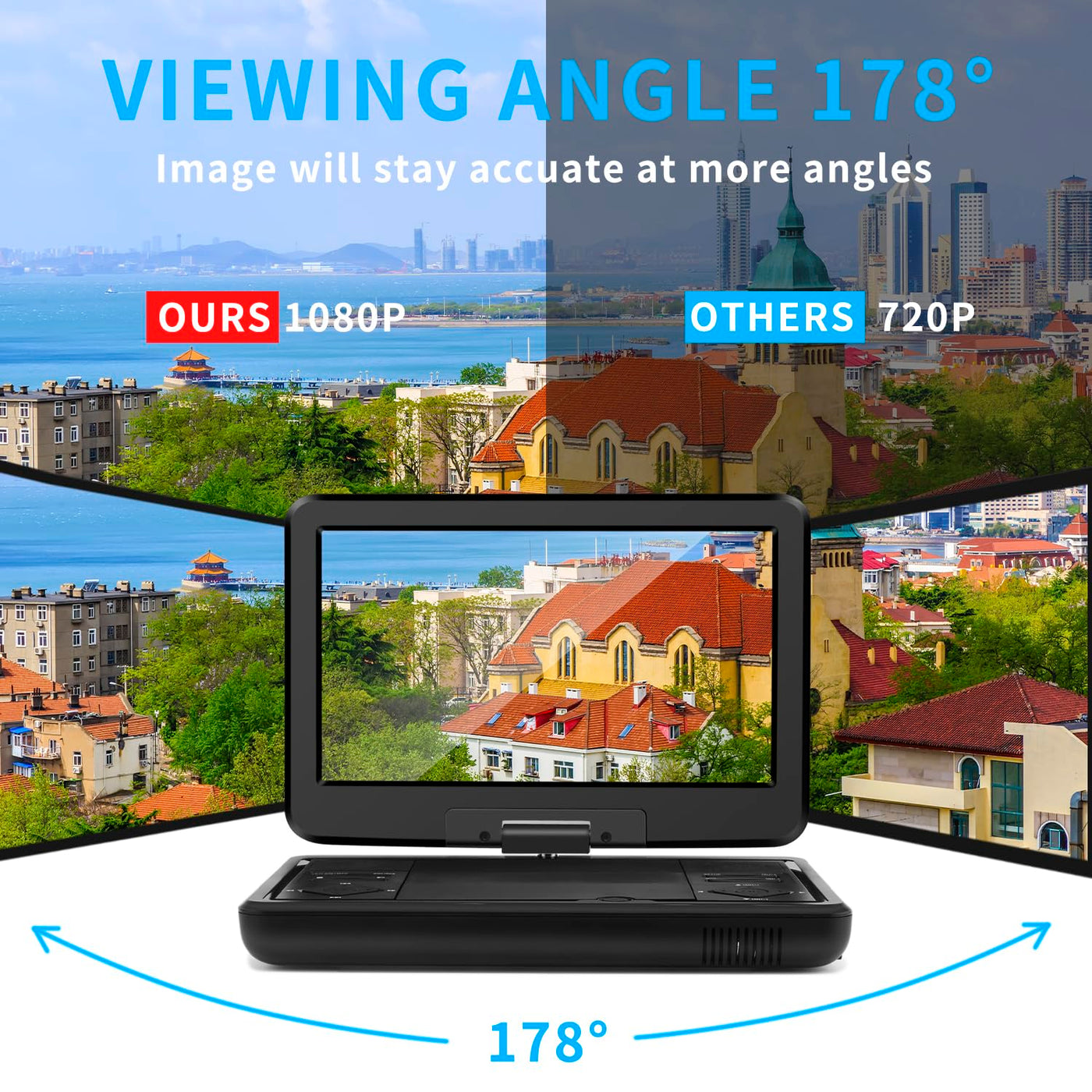Feihe 12.5'' Portable Tv/Dvd Player 10.1'' Fhd Ips Swivel Led Screen, Digital Tuner/Hdmi/Usb/Av, Built In Battery, High Volume