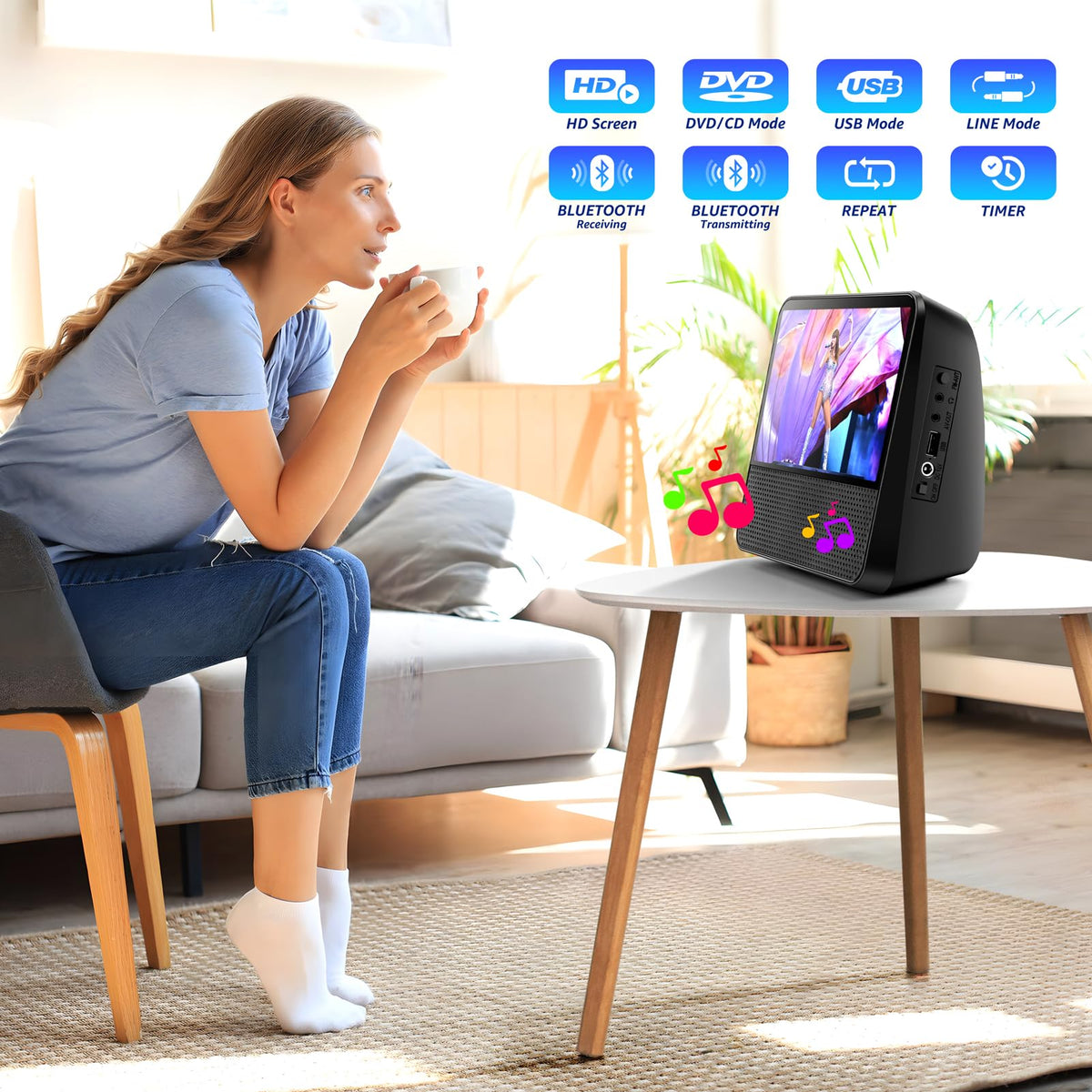 Roadom 9.8 Portable Dvd Player With Screen, 7 Hd 1024*600 Digital Screen, 4000 Mah Rechargeable, Hi-Fi Stereo Sound, Remote